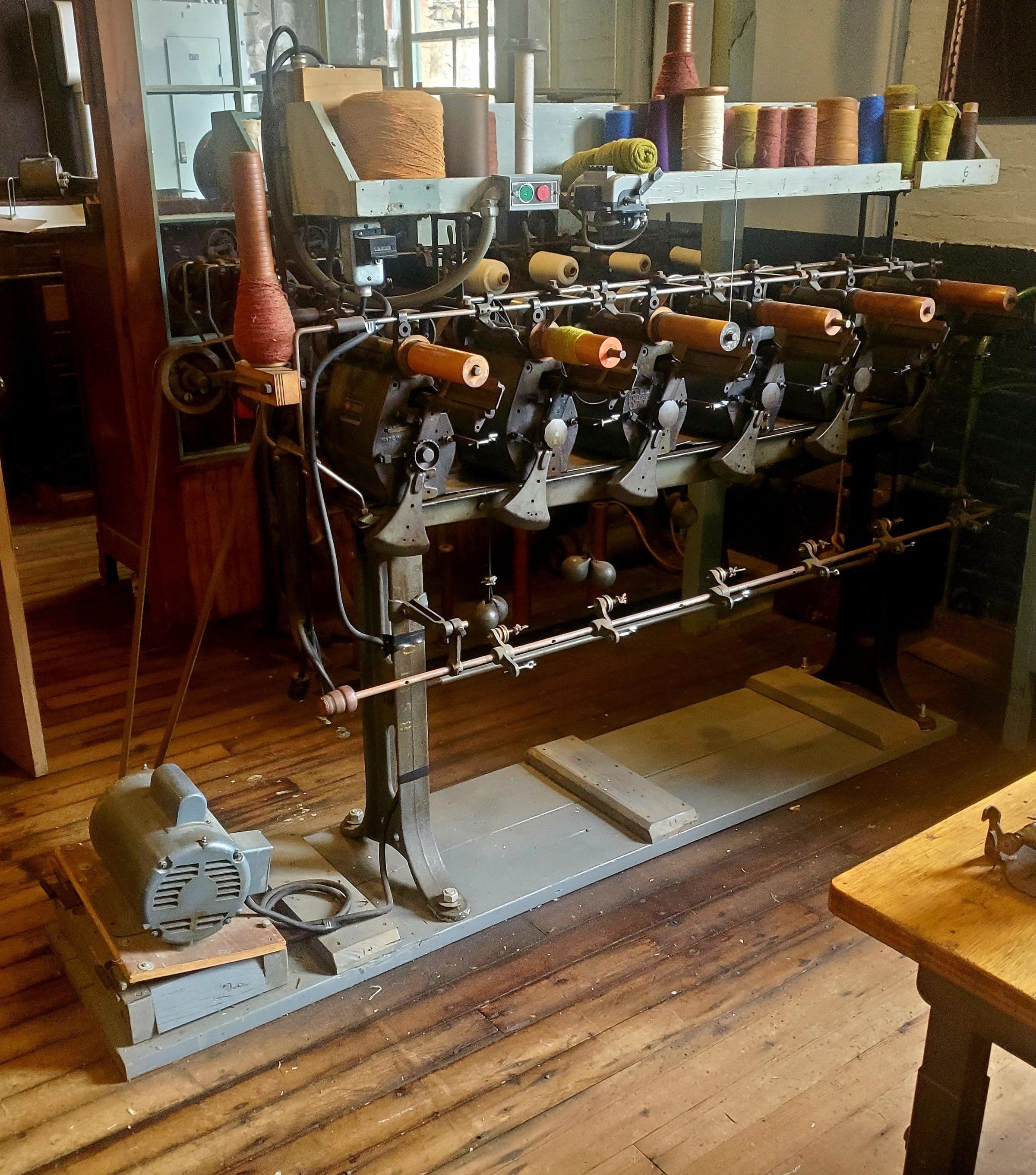 Plummer, Dale donor. This machine was once owned by the American Thread Company. Plummer acquired it after ATCO closed its Willimantic plant in 1985, to use in a small textile manufactoring mill he operated in the old Ponemah Mills in the Taftville neighborhood of Norwich, CT.Place