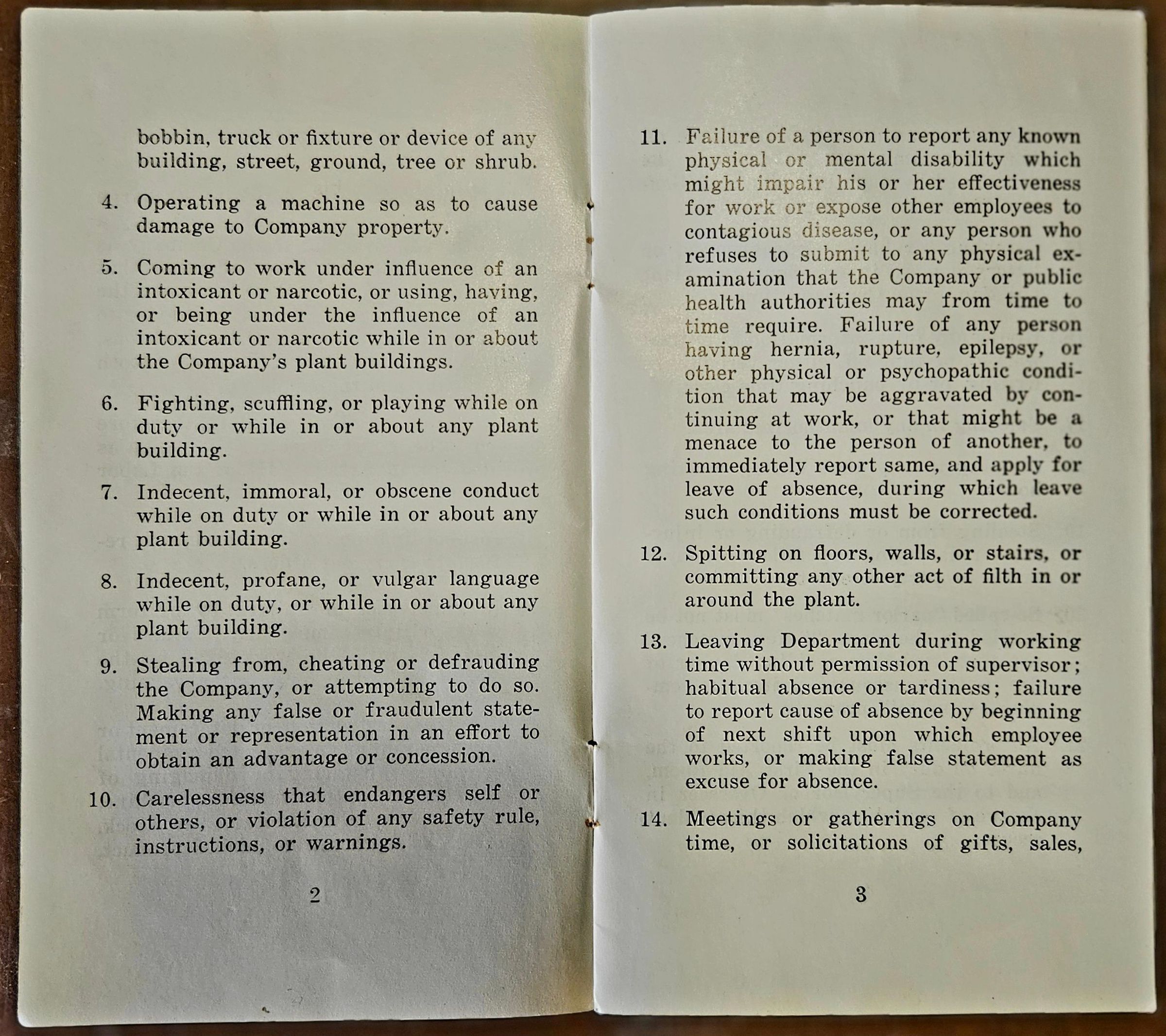 Booklet (9 pp). "Plant and Safety Rules. The American Thread Company. Willimantic Mills. Willimantic, Connecticut." No date, but probably c. 1960.Collection