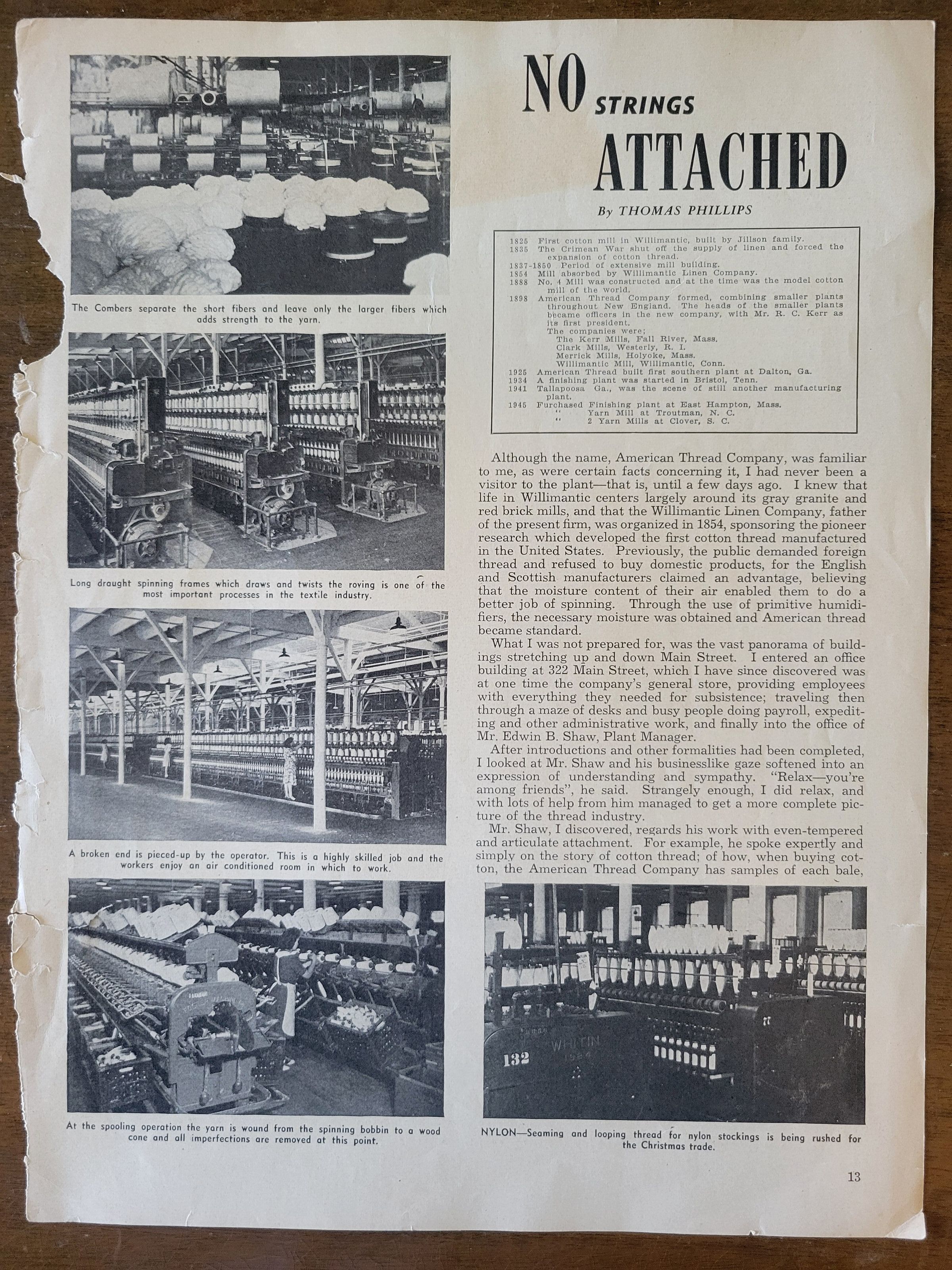 Articles About Willimantic, CT and its Mills, circa 1945Entry/Object ID