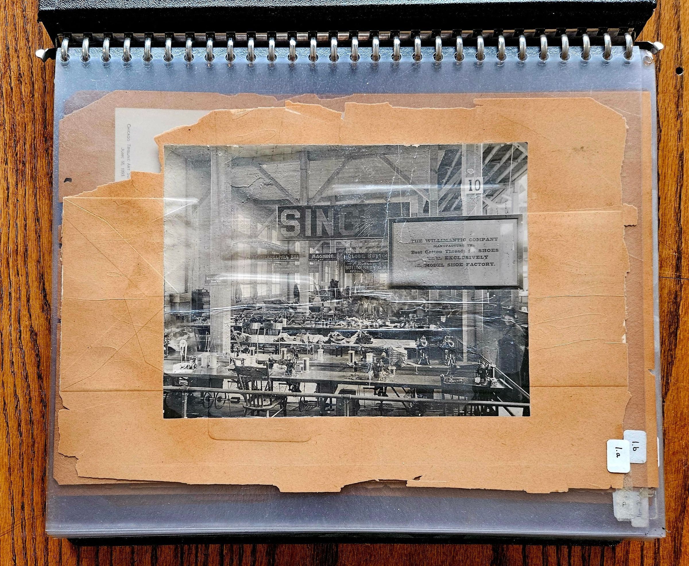 Scrapbook. Kept by Eugene S. Boss of the Columbia Exposition (World's Fair) in Chicago, 1893. Boss was both the Superintendent of the Willimantic Linen Company in Willimantic, CT, and the Vice President of the Connecticut delegation to the Exposition. He went to Chicago to set up both the Connecticut pavilion and the WLC's booth. The scrapbook is 66 pages. The paper was probably originally an off-white or light brown, but has yellowed and darkened with time. All of the original pages have been torn over time. The majority of the items pasted into the scrapbook are newspaper articles, but there are numerous illustrations, as well. The pages have been laminated and bound.Context