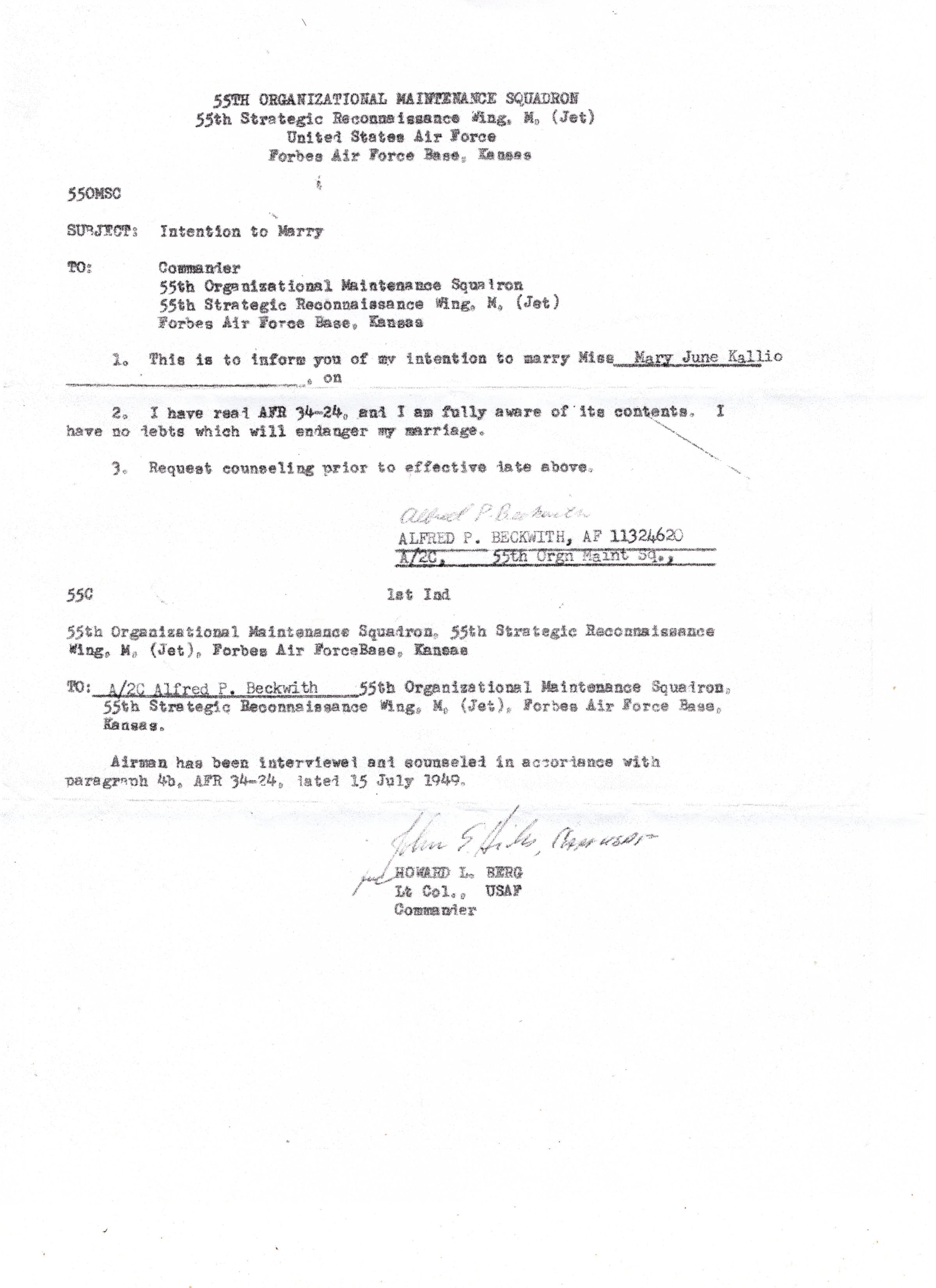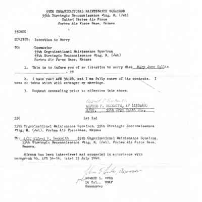 Photocopies of papers and photographs from Alfred Pierce Beckwith's time in the United States Airforce.