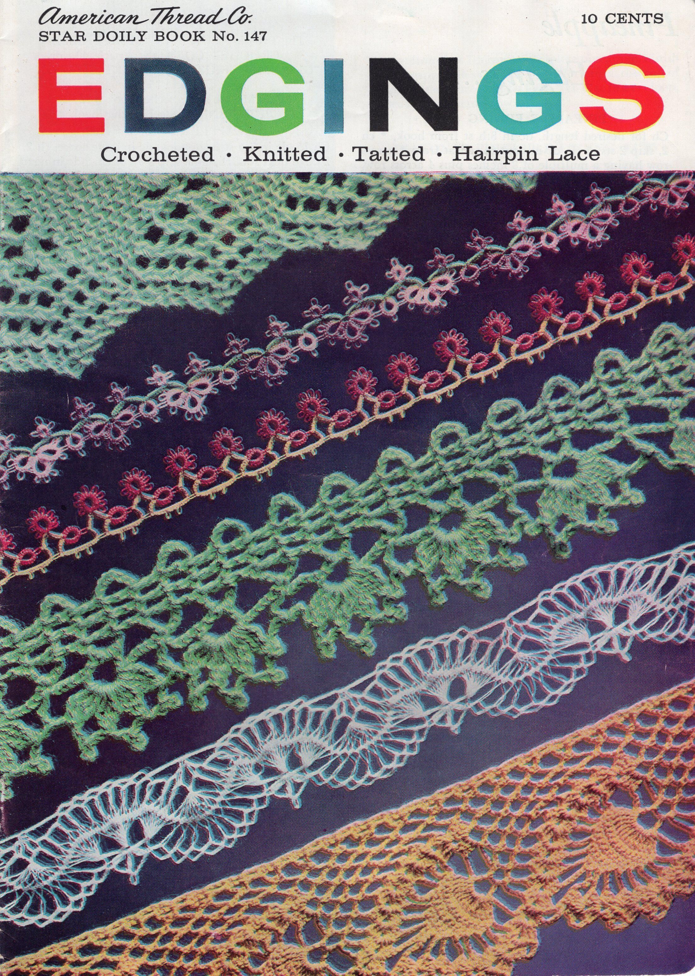 Booklet on edgings made with tatting, crochet, knitting and hairpin lace.Created By