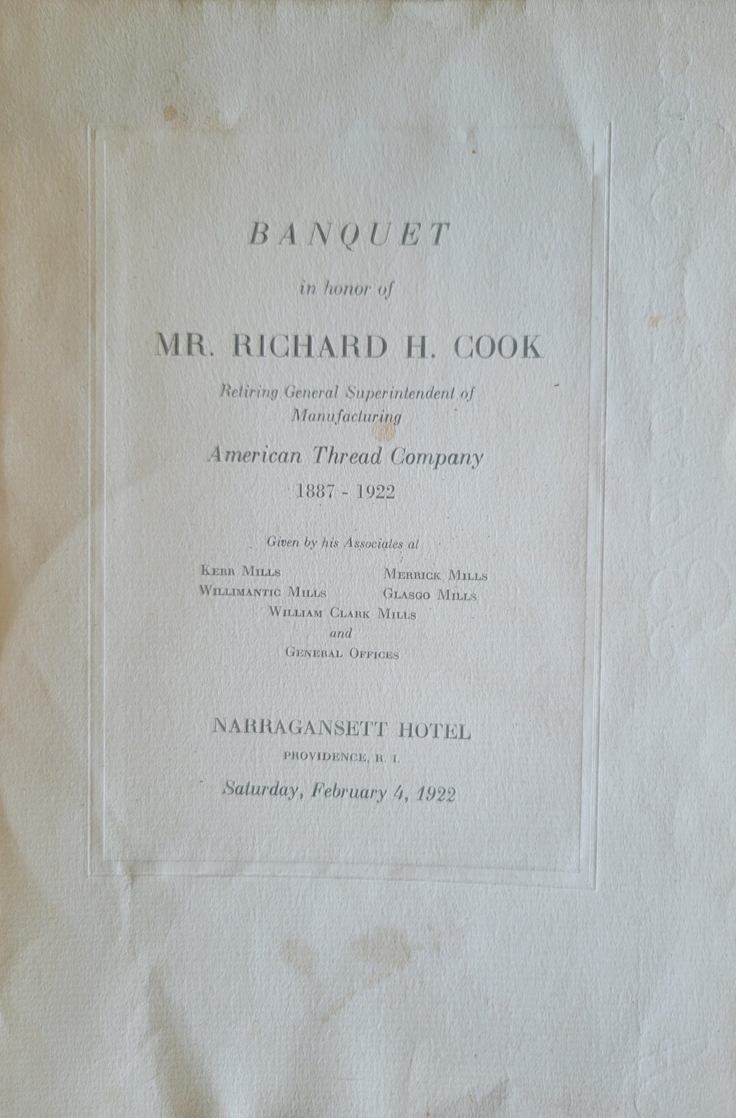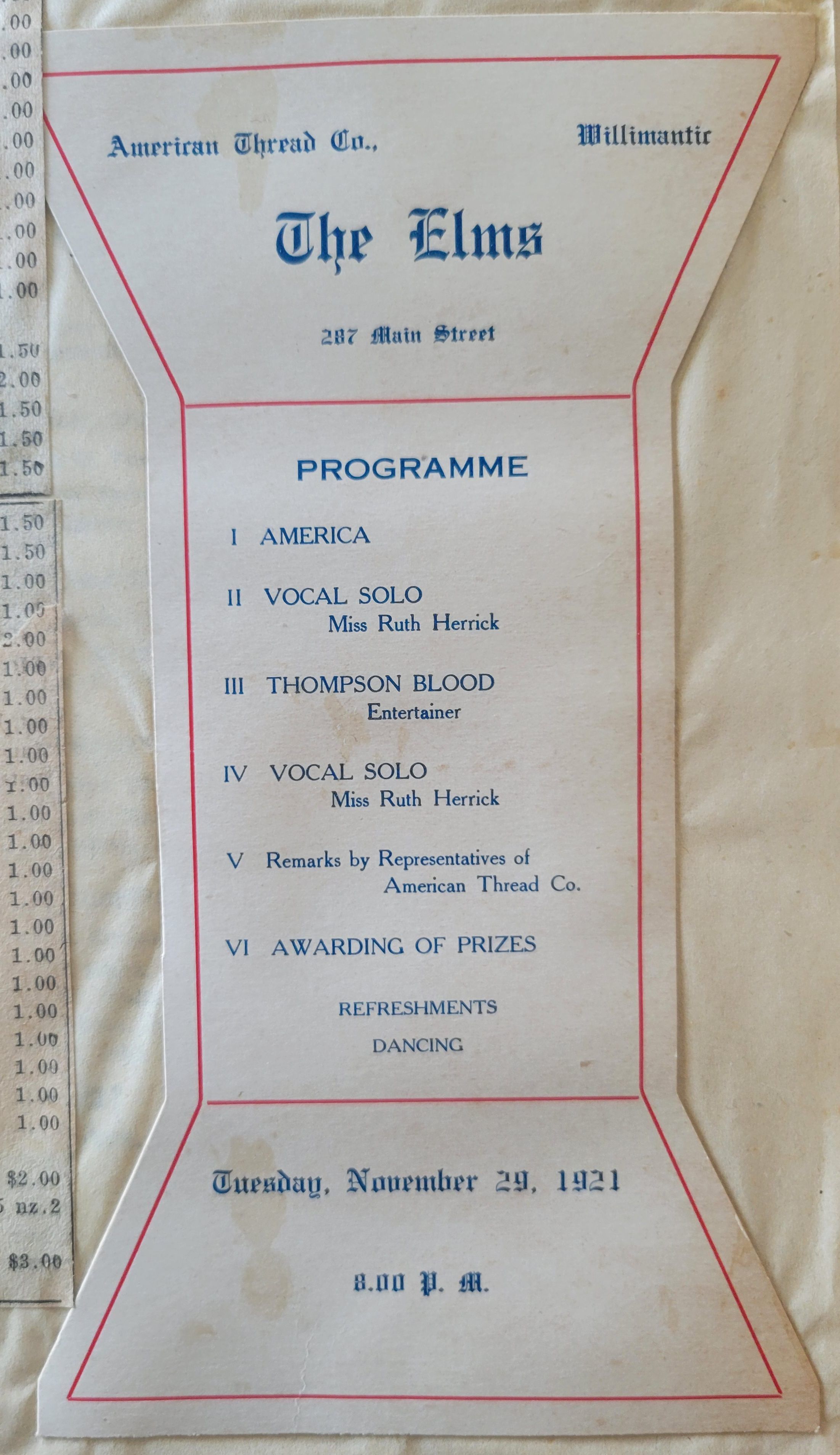 Programs for events held by the American Thread Co. for their employees and board members. Events held between 1920 and 1923.Collection