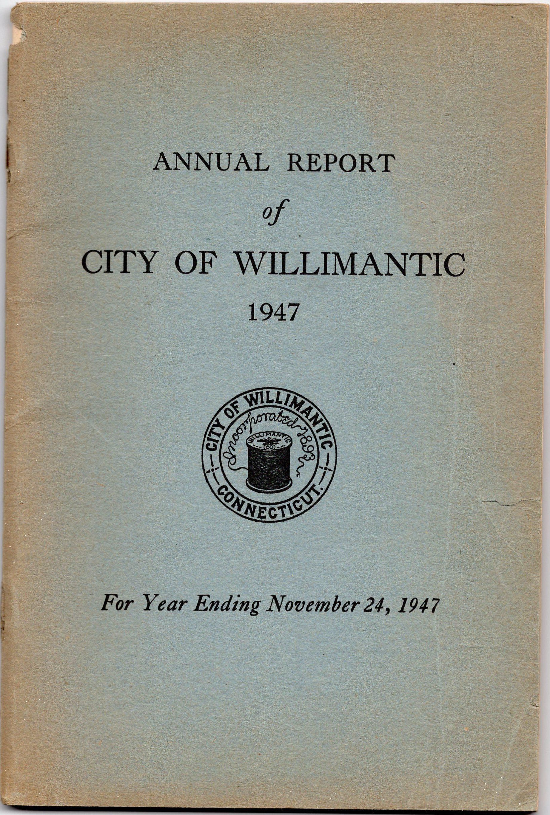 Annual Report of the City of Willimantic, November 1947Entry/Object ID