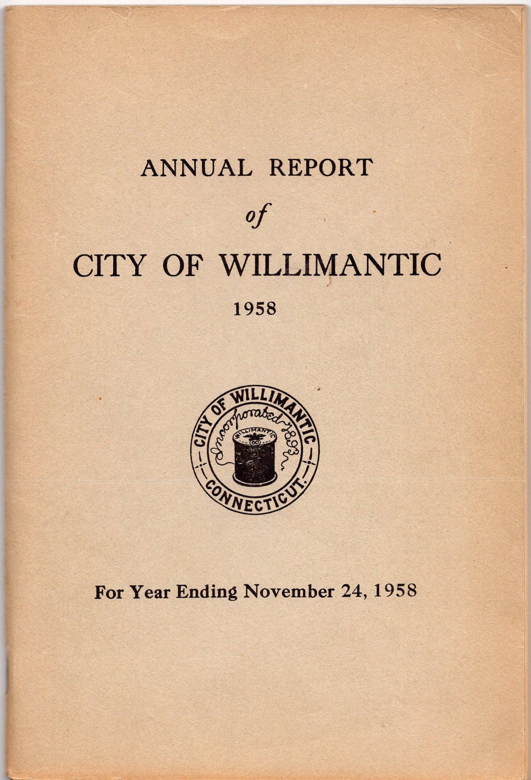 Annual Report of the City of Willimantic, November 1958Entry/Object ID