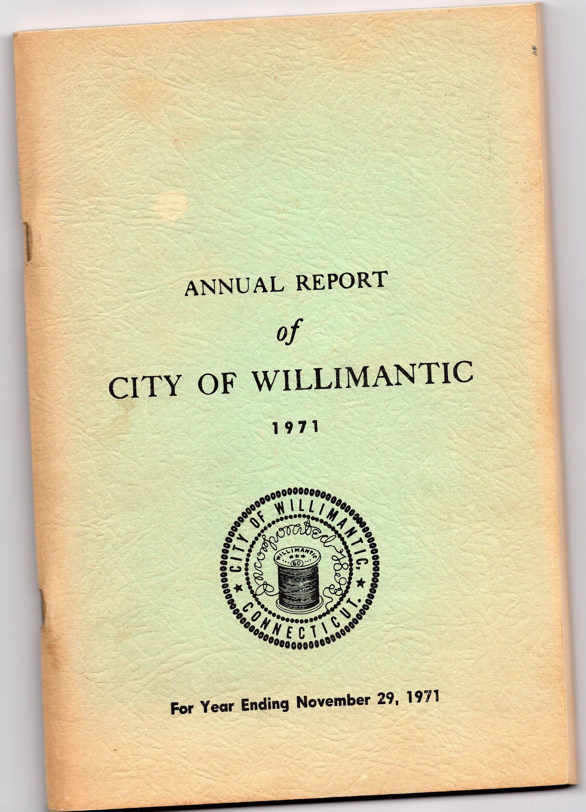 Annual Report of the City of Willimantic, November 1971Entry/Object ID