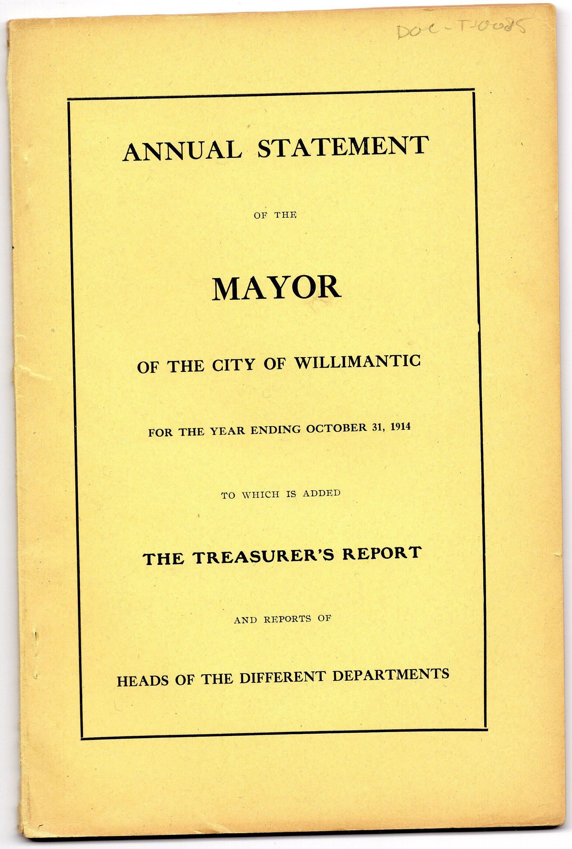 Annual Statement of the Mayor of the City of Willimantic, October 1914Entry/Object ID