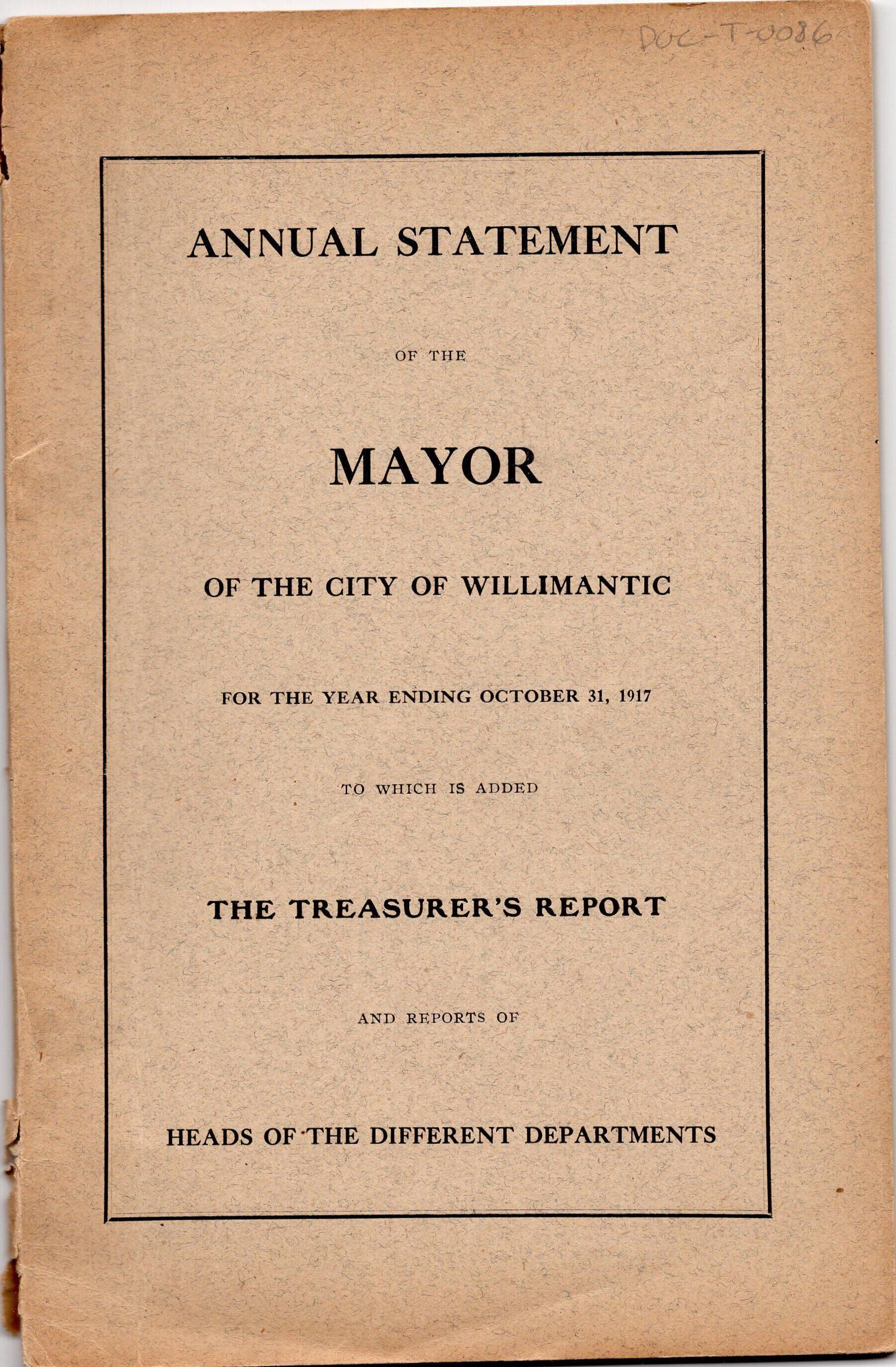 Annual Statement of the Mayor of the City of Willimantic, October 1917Entry/Object ID