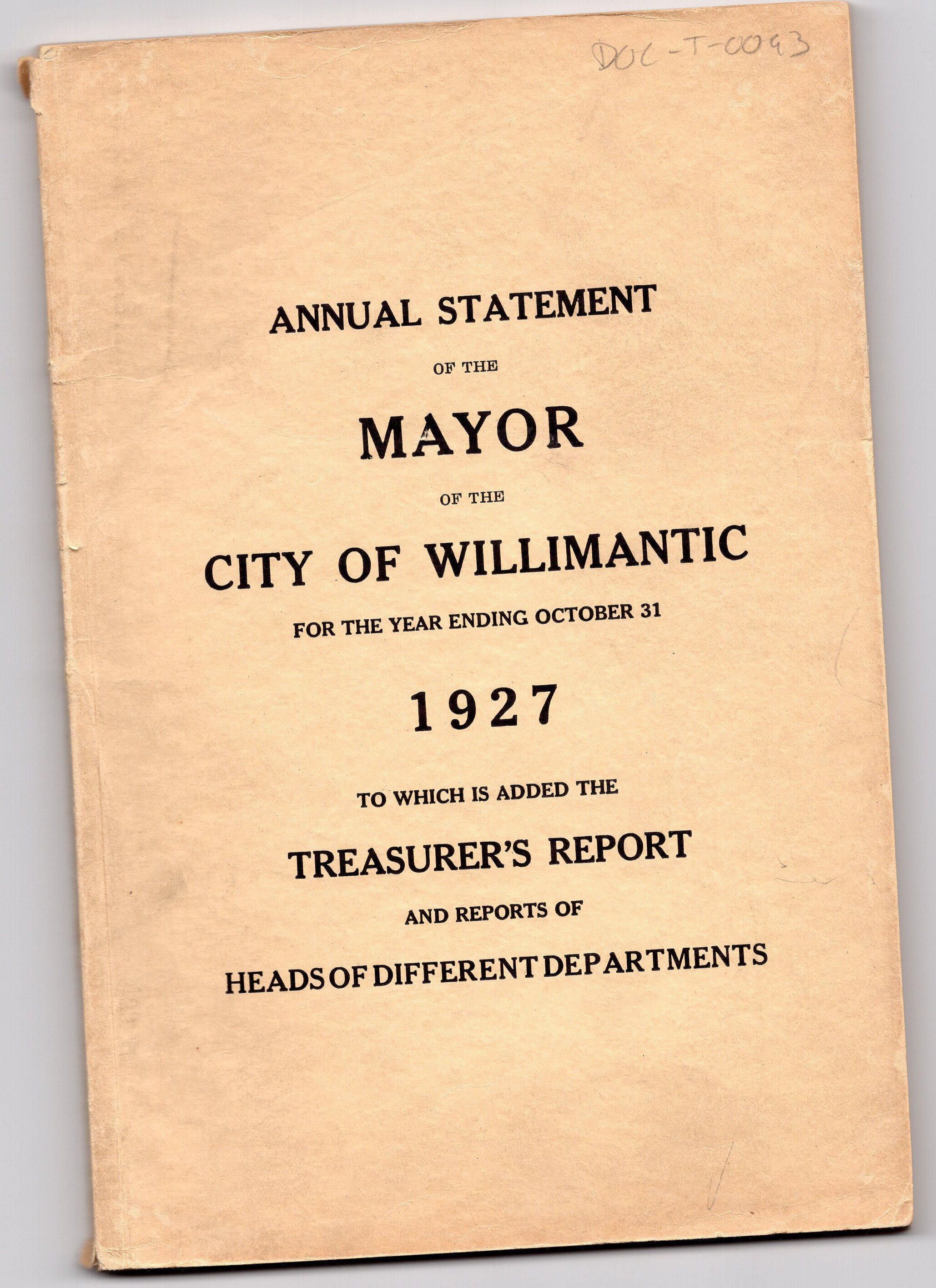 Annual Statement of the Mayor of the City of Willimantic, October 1927Entry/Object ID