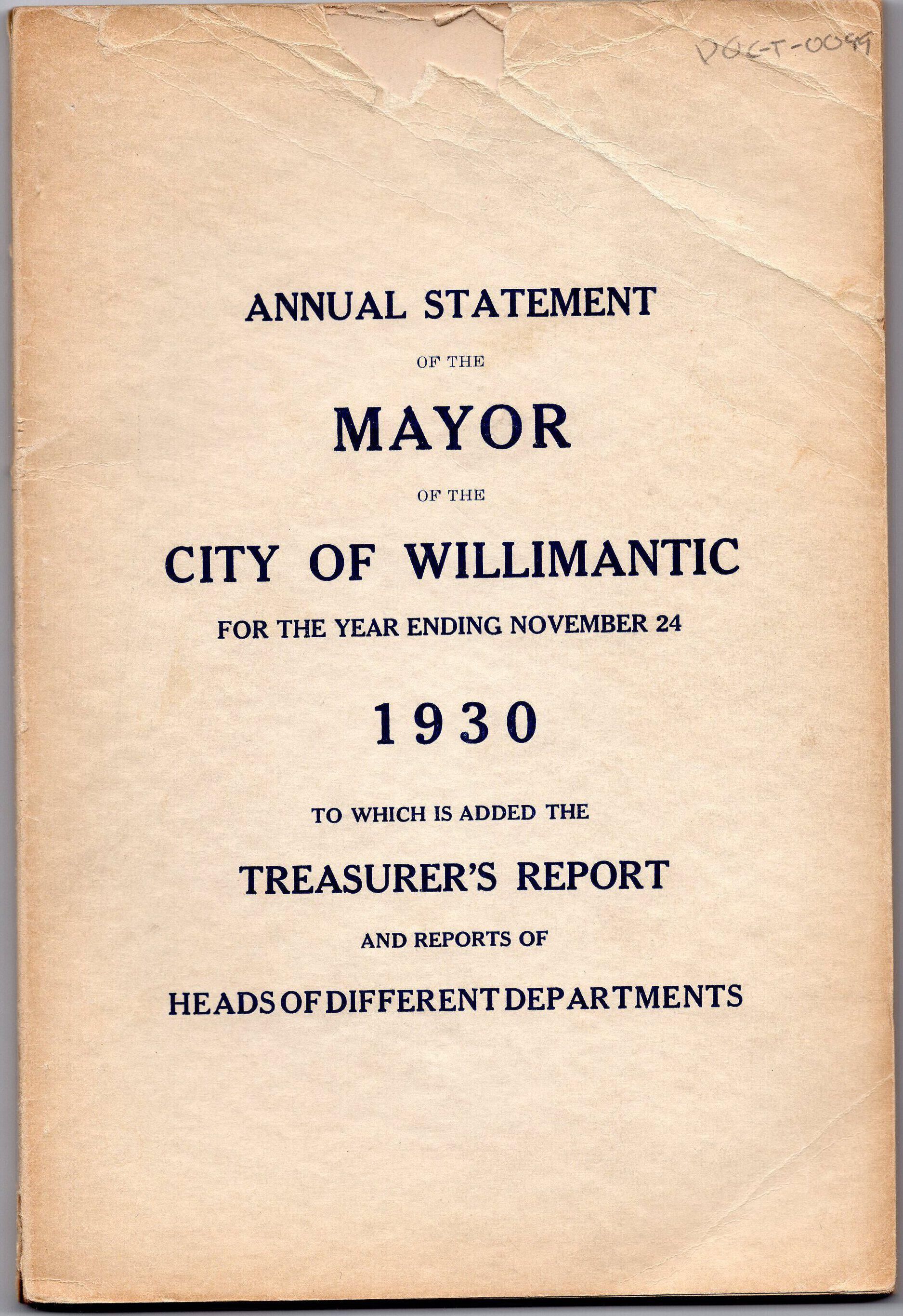 Annual Statement of the Mayor of Willimantic, November 1930Entry/Object ID