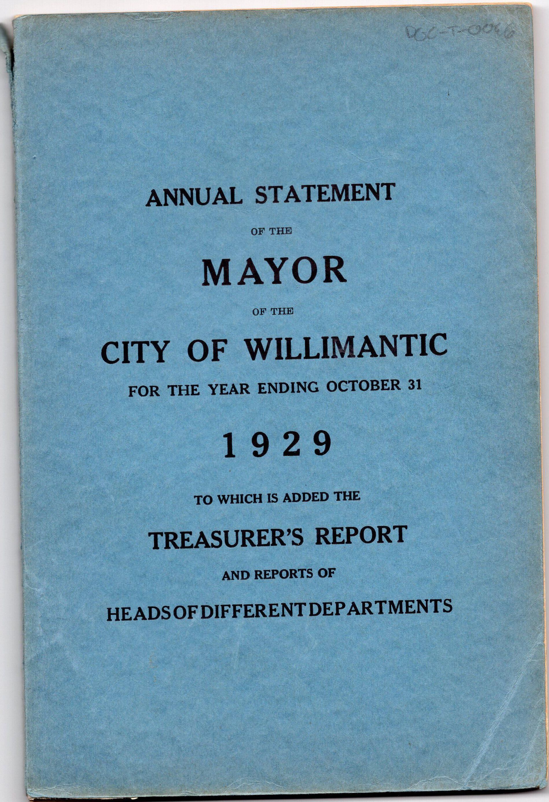 Annual Statement of the Mayor of Willimantic, October 1929Entry/Object ID