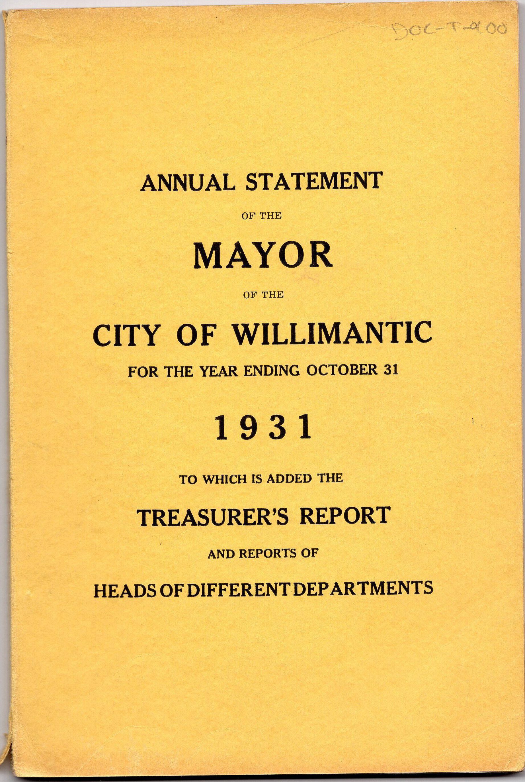 Annual Statement of the Mayor of Willimantic, October 1931Entry/Object ID