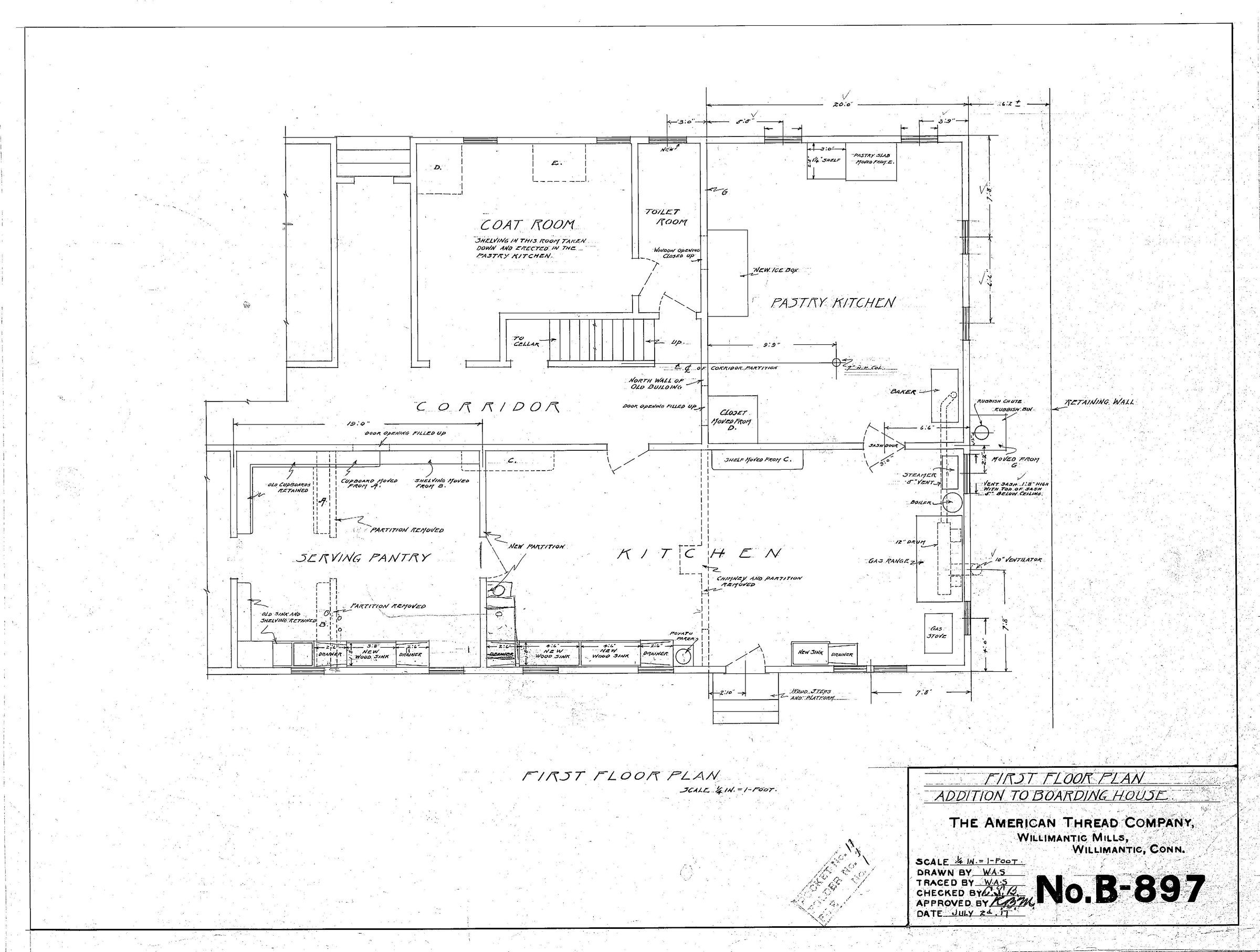 First floor plan, addition to boarding house, American Thread Company, Willimantic Mills, Willimantic, CT. Scale: 1/4 in. = 1 ft.Collection