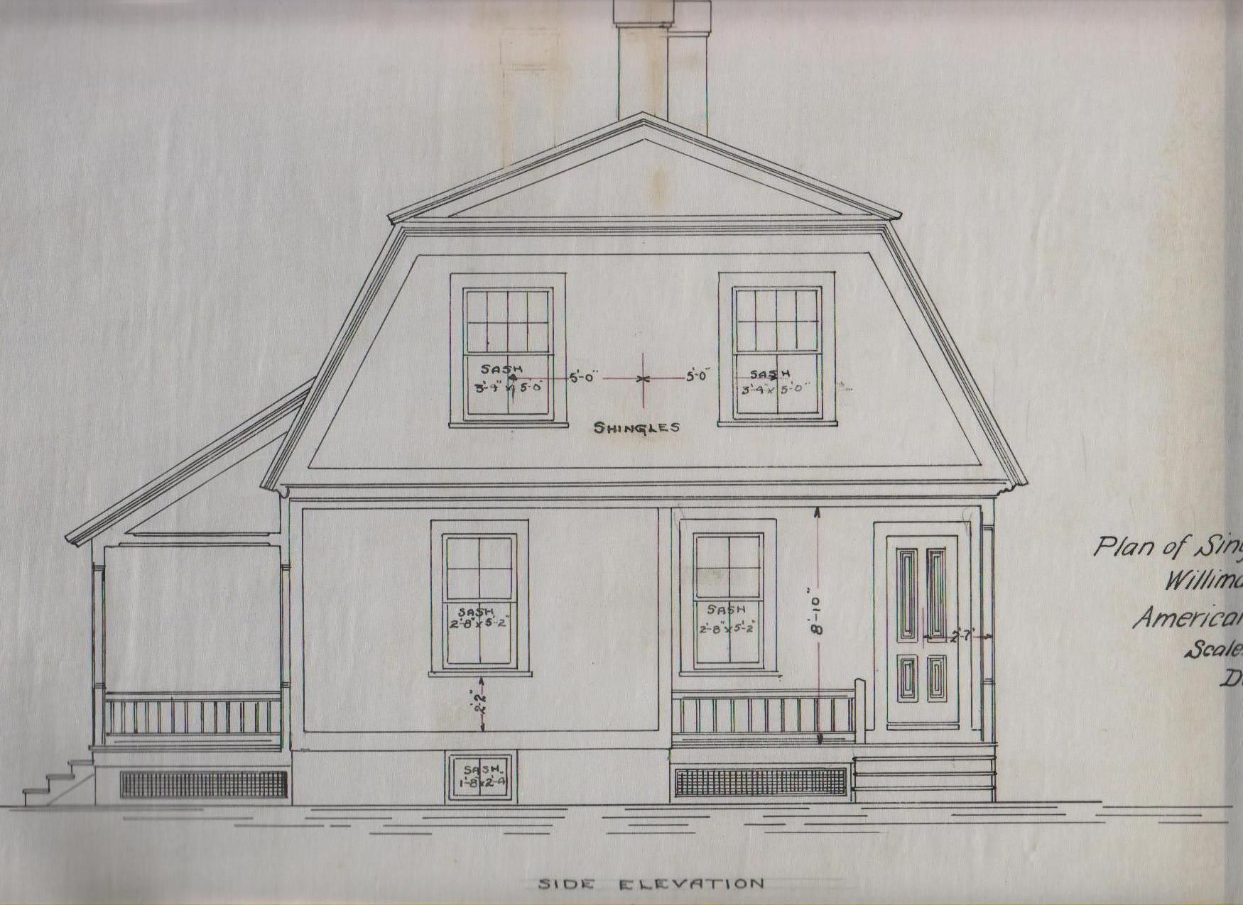 Plan of Single Tenement, Willimantic Mills, American Thread Company, Willimantic, CT. Scale: 1/4 in. = 1 ft. Side elevation.Collection