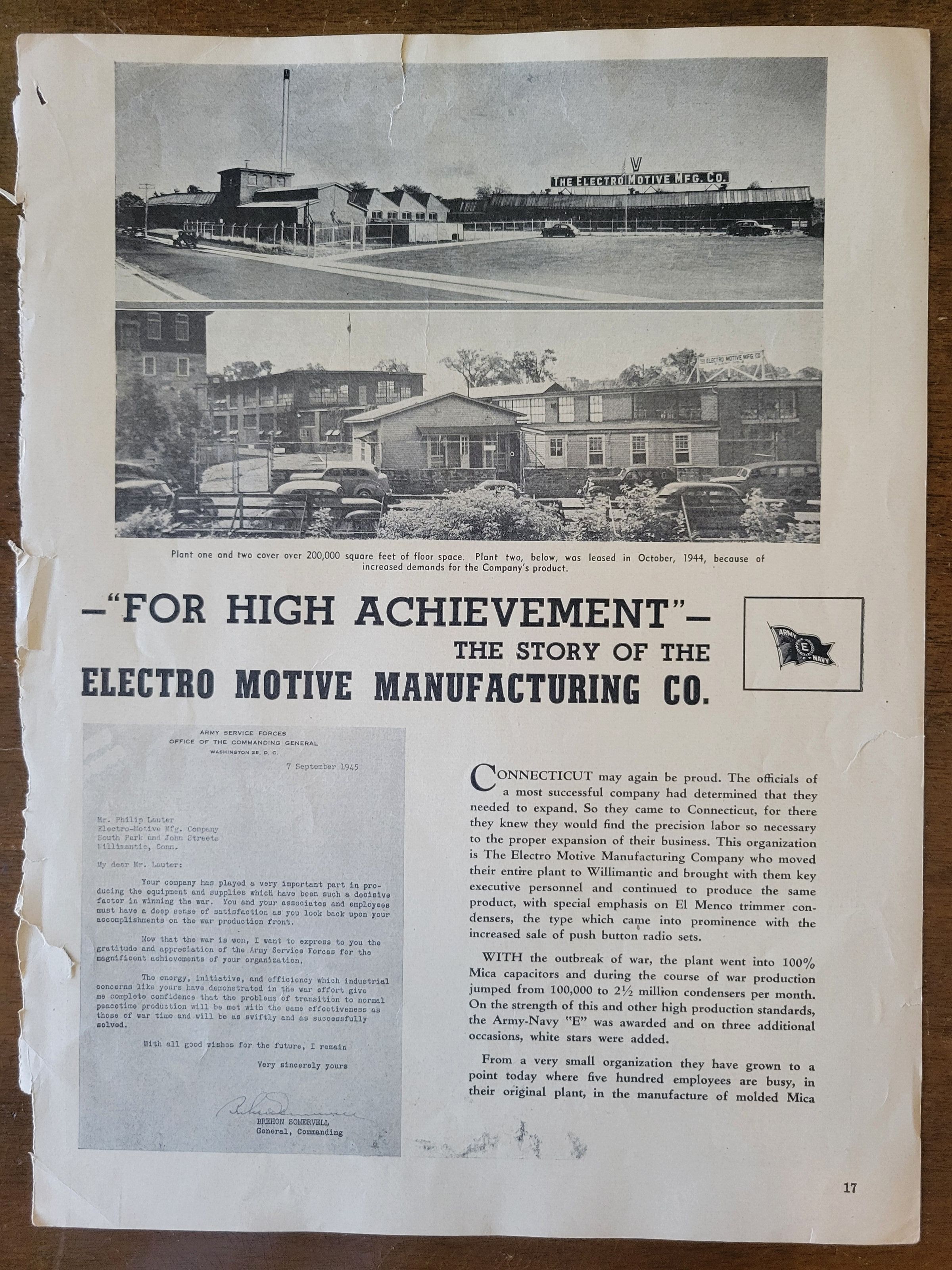 Willimantic The Thread City/ No Strings Attached/"For High Achievement" The Story of the Electro Motive Manufacturing Co.Description