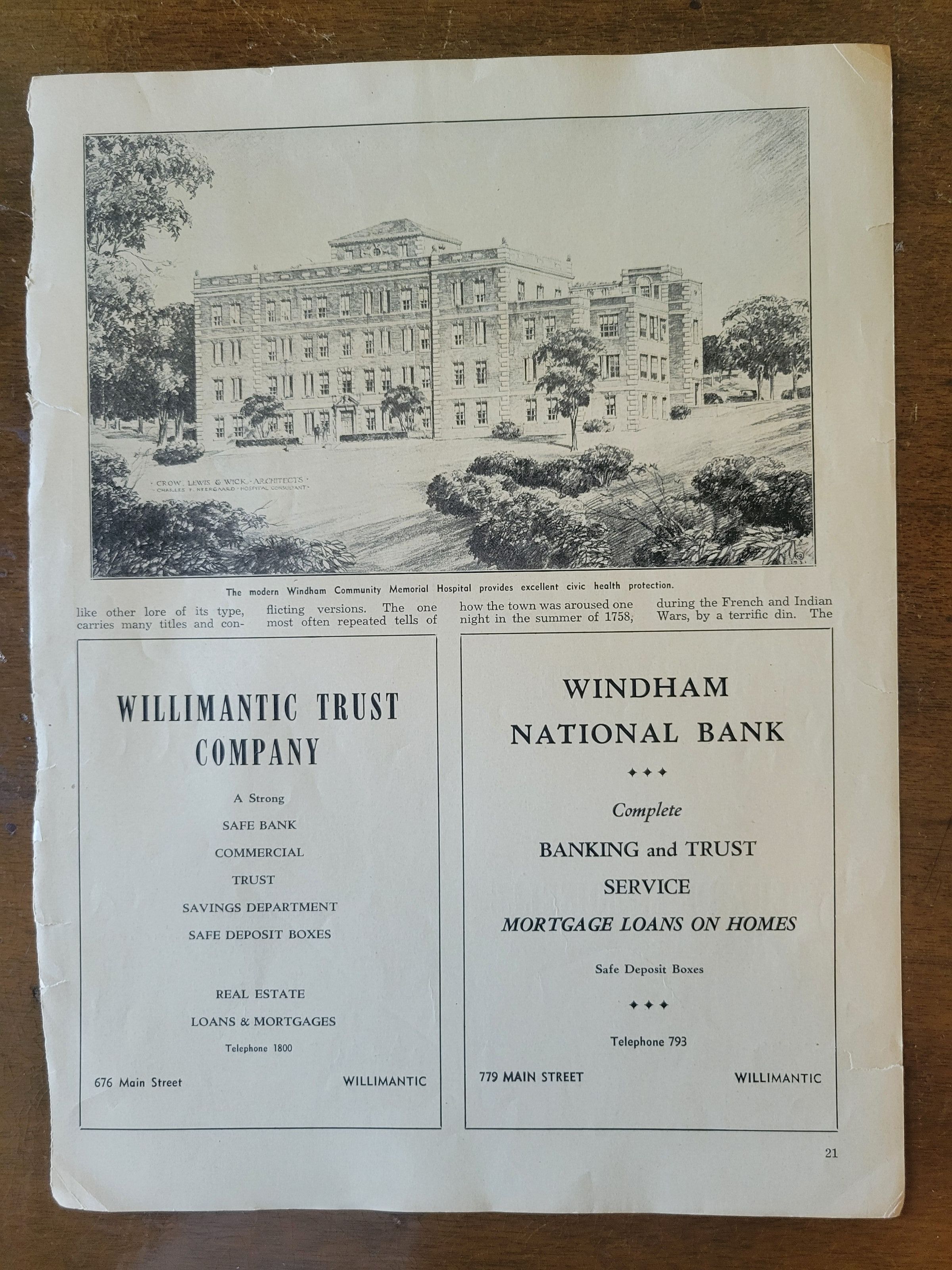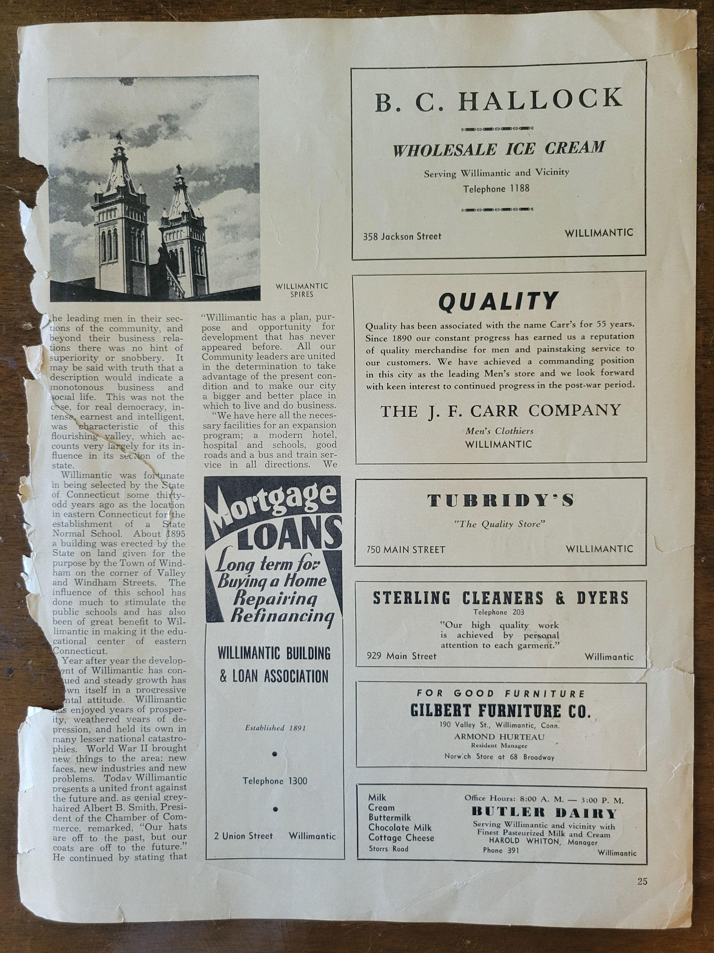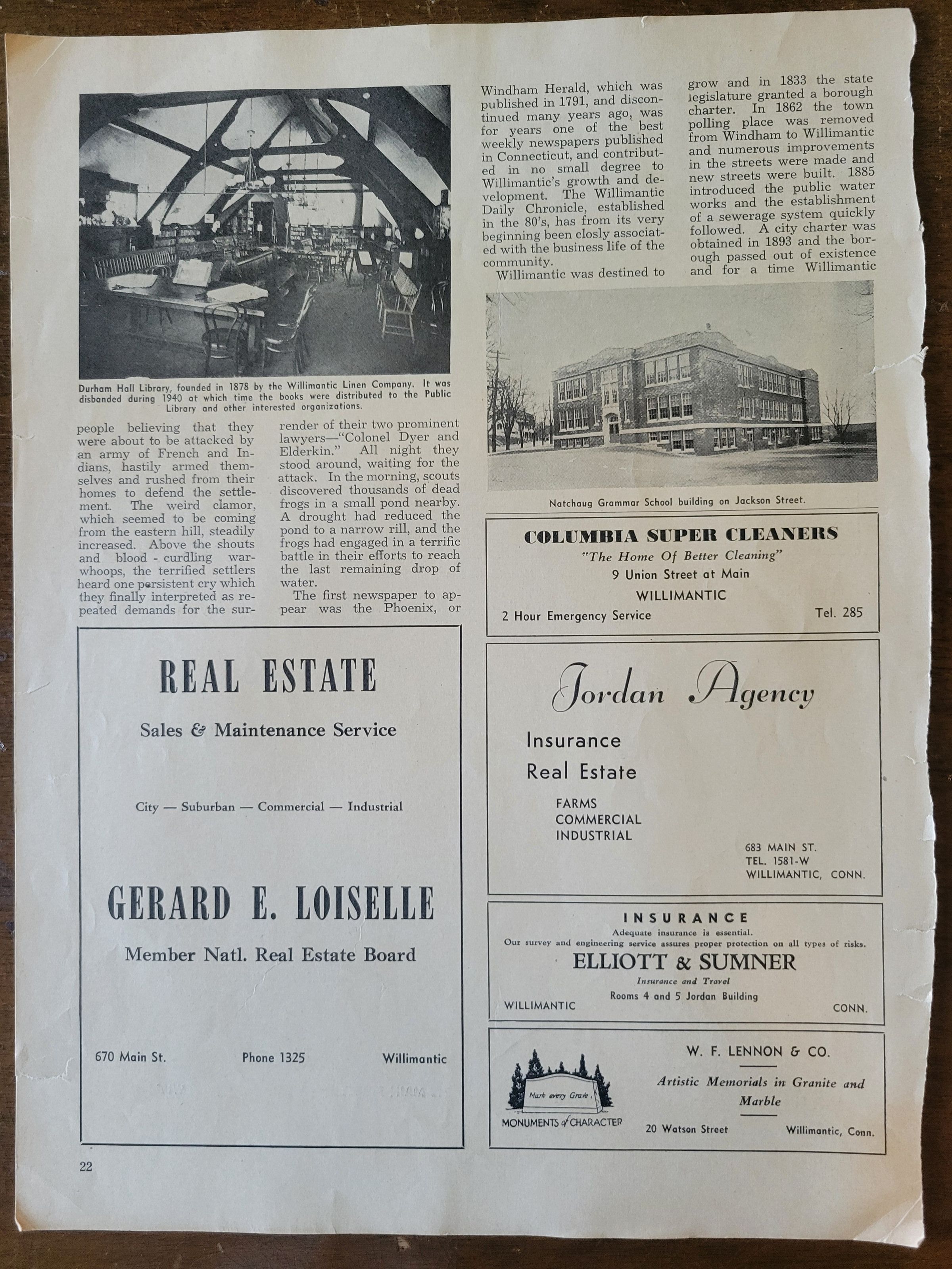 Articles About Willimantic, CT and its Mills, circa 1945Entry/Object ID