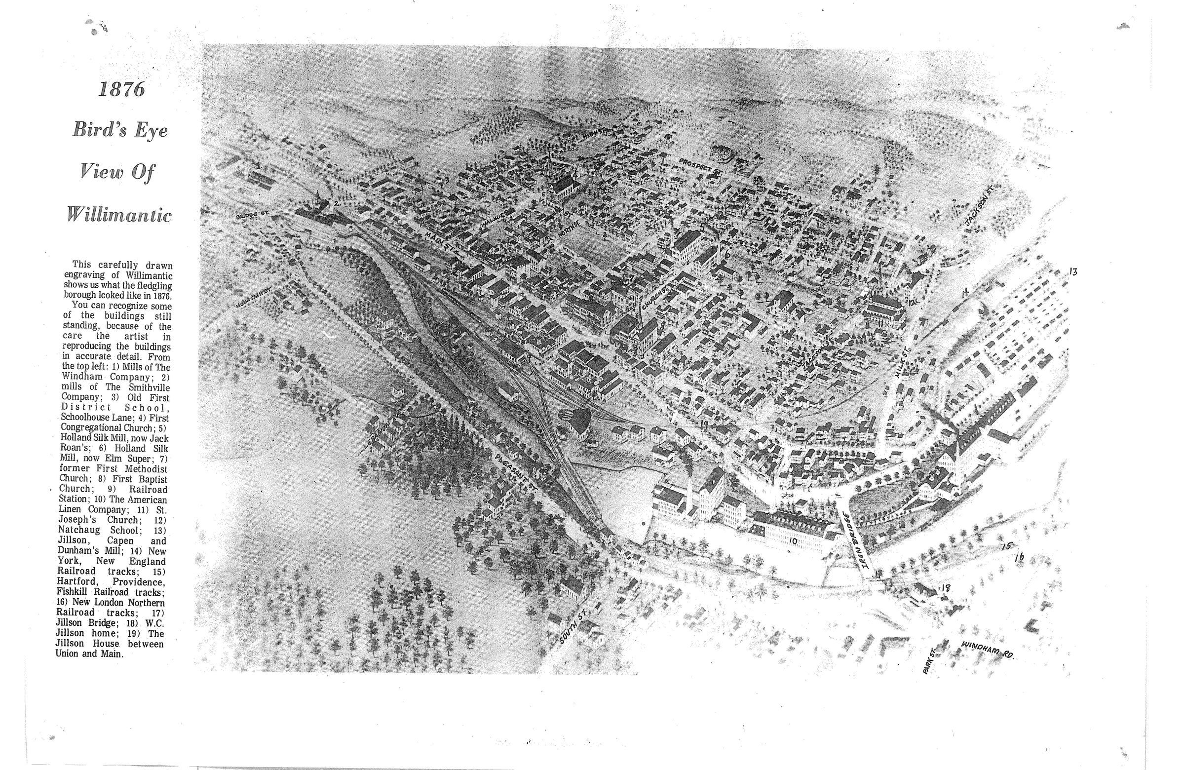 Copy of an 1876 Bird's Eye View of Willimantic, CT. Poor quality.Collection