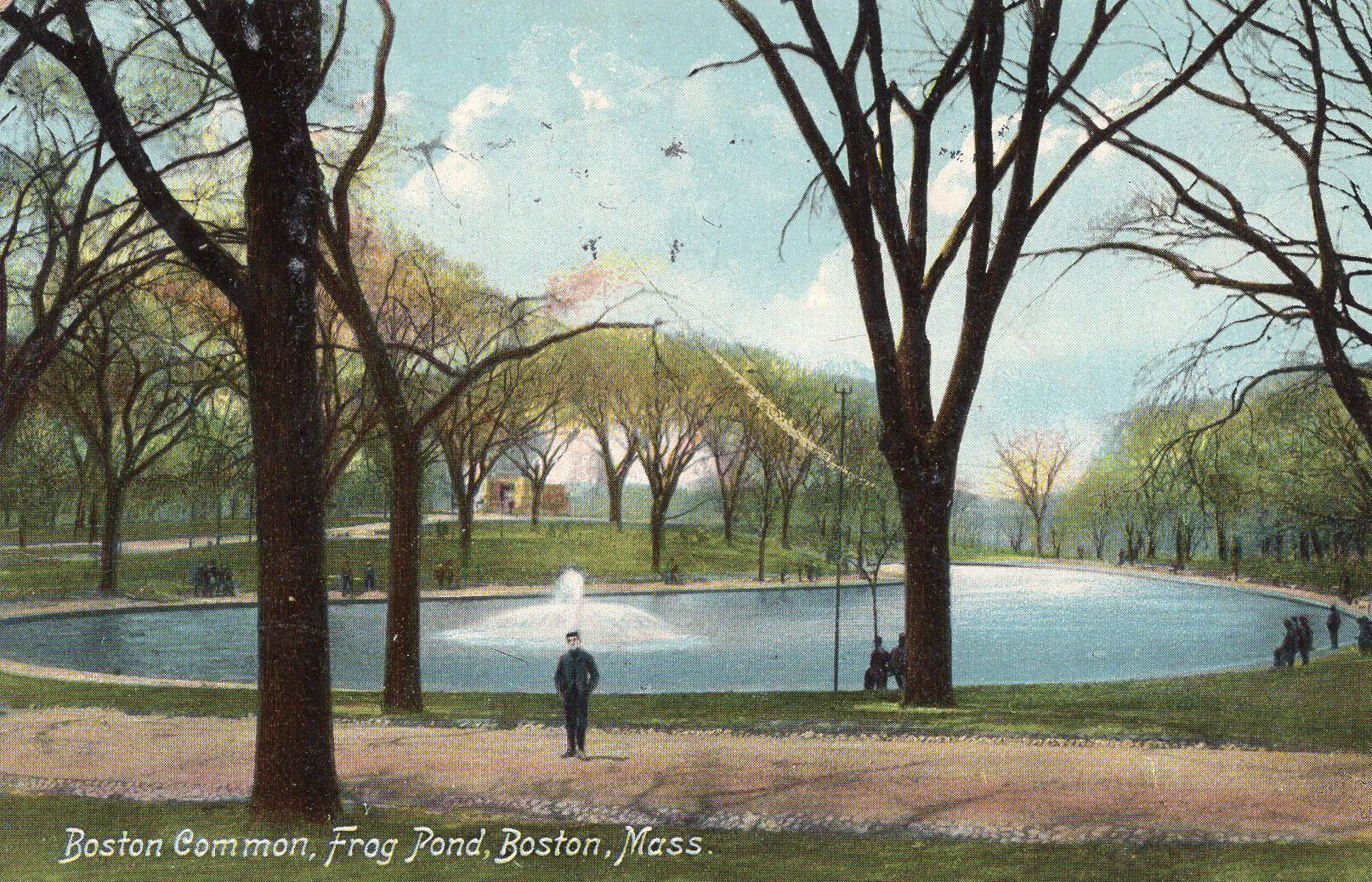 A postcard of the Boston Common at the Frog Pond in Boston, Mass.Condition