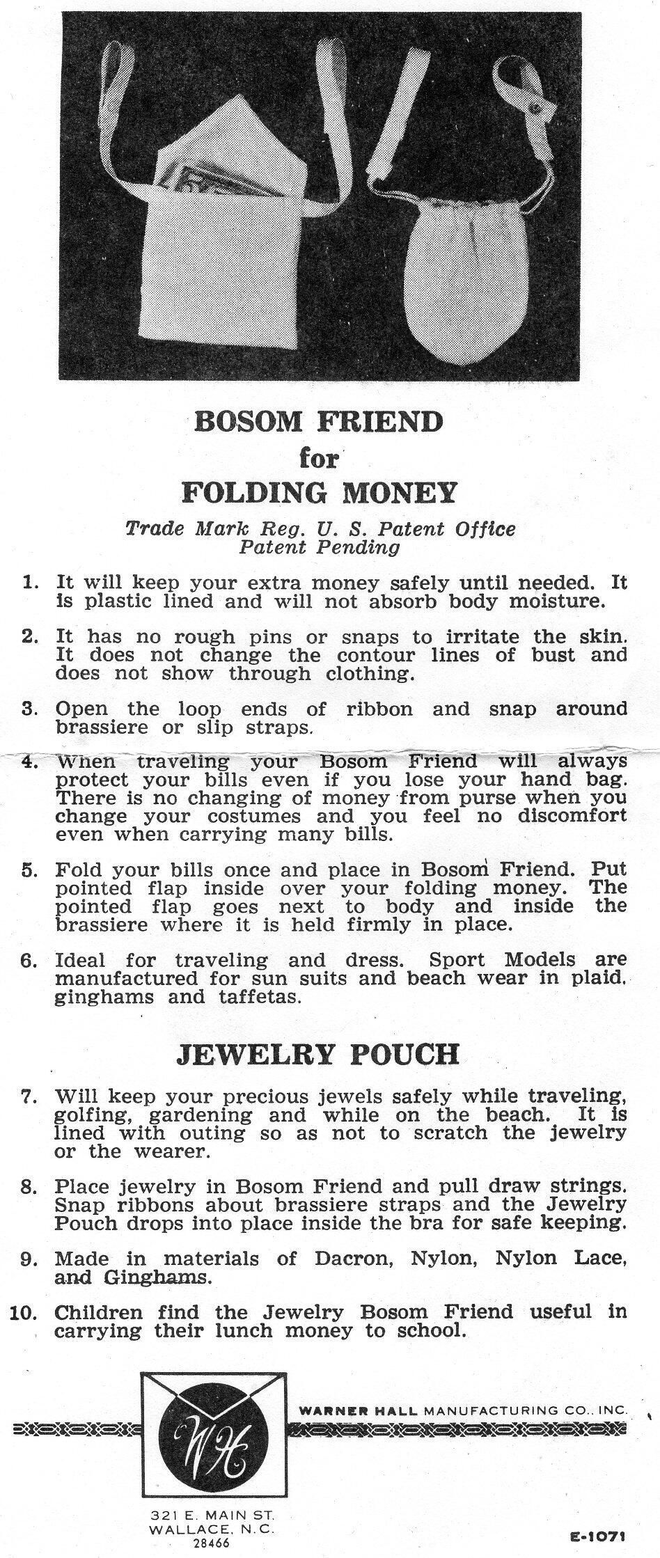 This small bag was meant to wear around the straps of your brassier or slip. It was to keep taxi fair or money for emergencies. It was also a safe place to keep jewelry.Collection