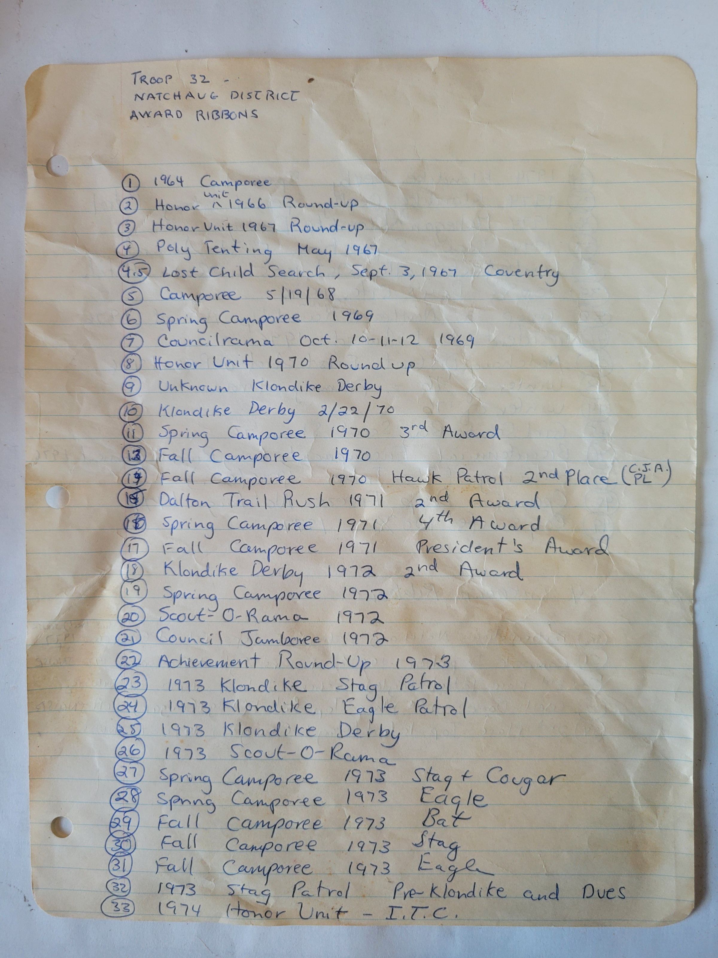 BSA Troop 32 Award Ribbons 1964-1977Entry/Object ID