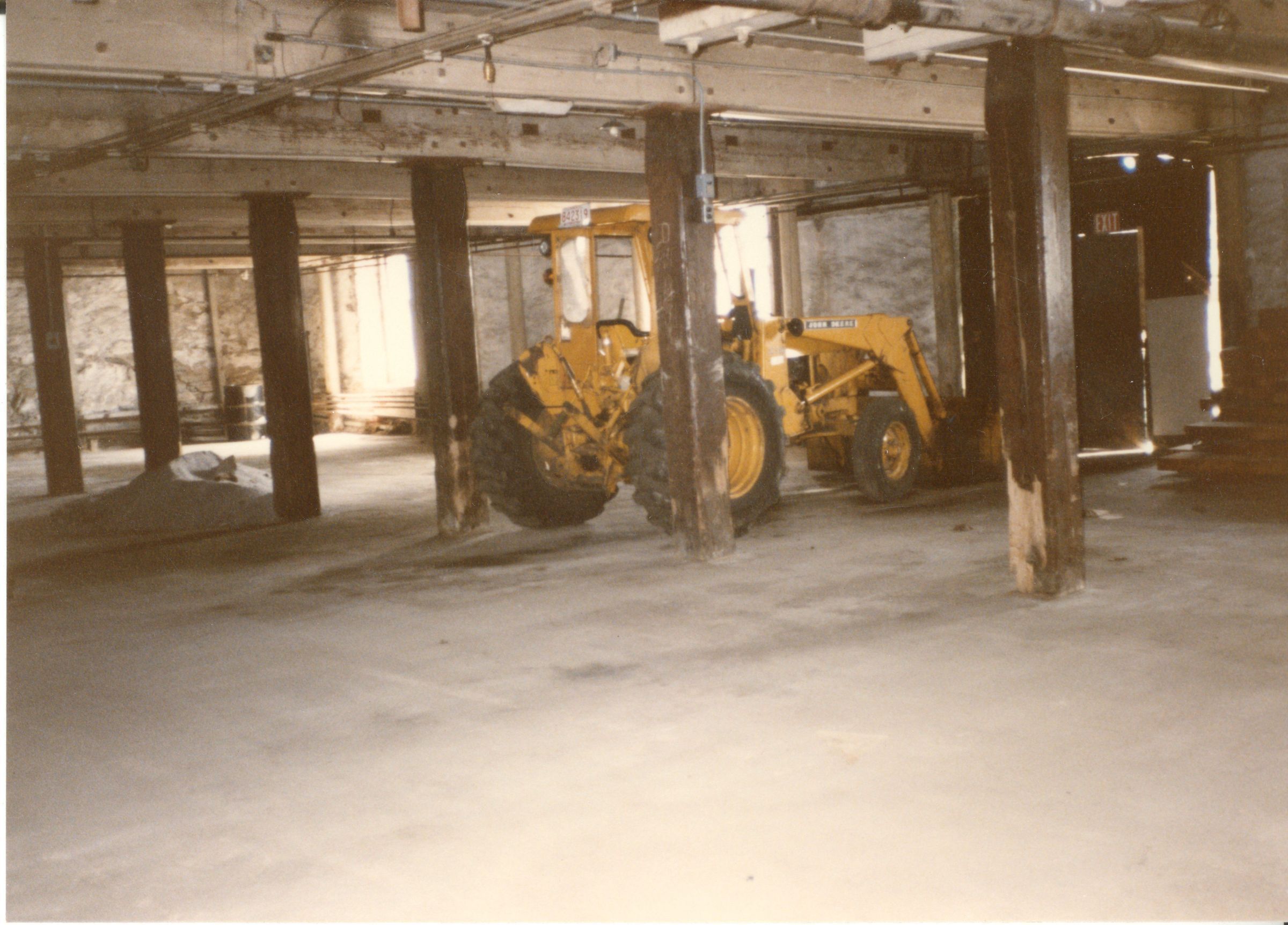 Color photographic print of the interior of Building 27, a.k.a. the Storehouse and Inspection Building, a granite structure that was also the east wing of Mill No. 2. Unknown photographer. Taken 1986, shortly after ATCO closed its Willimantic plant.Photograph Details