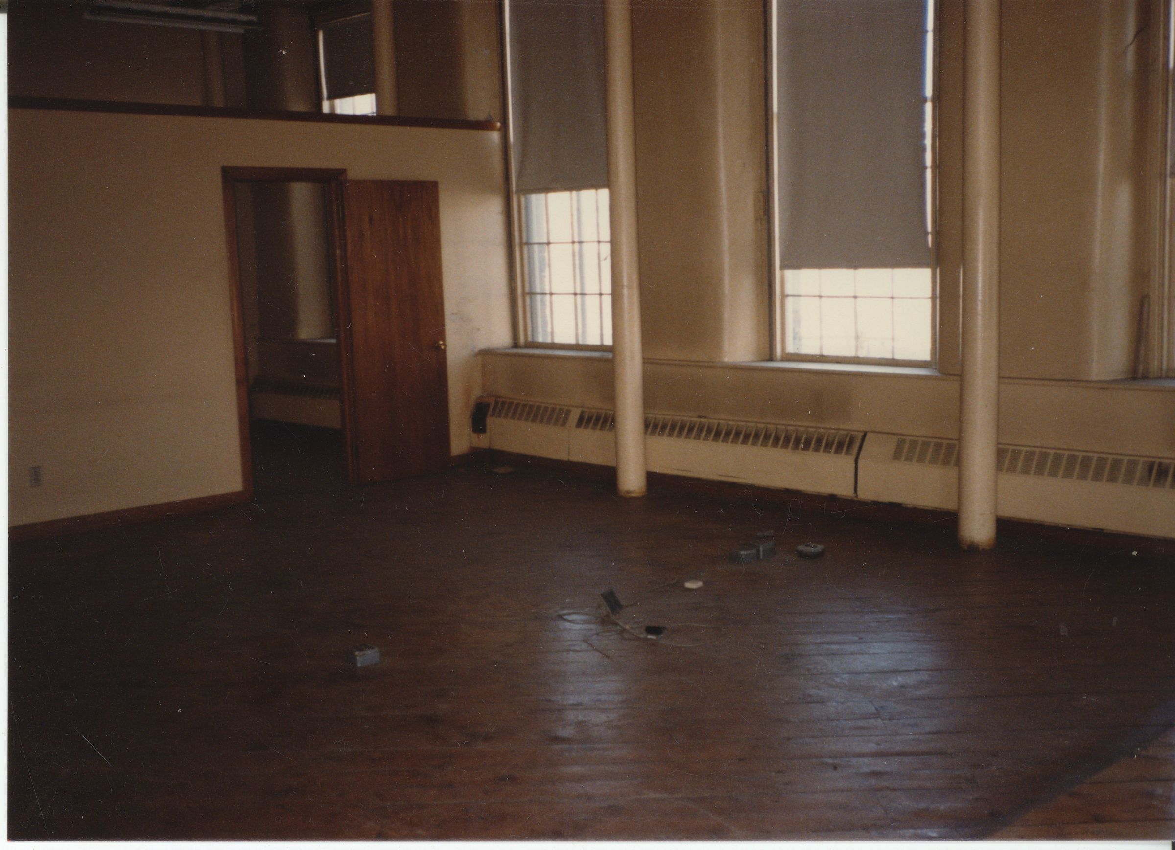Color photographic print of the interior of Building 27, a.k.a. the Storehouse and Inspection Building, a granite structure that was also the east wing of Mill No. 2. Unknown photographer. Taken 1986, shortly after ATCO closed its Willimantic plant.Photograph Details