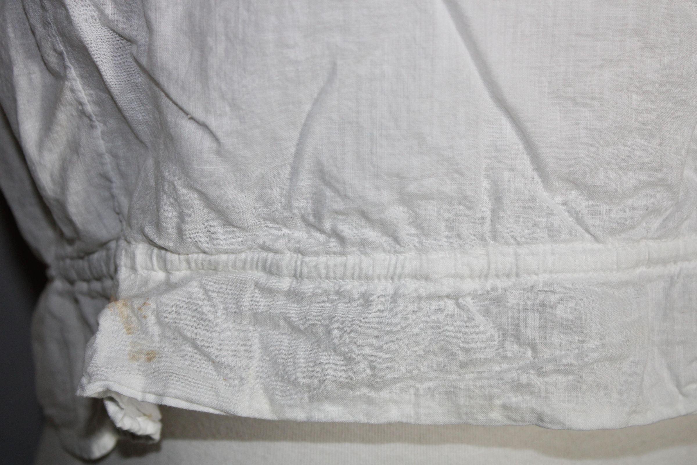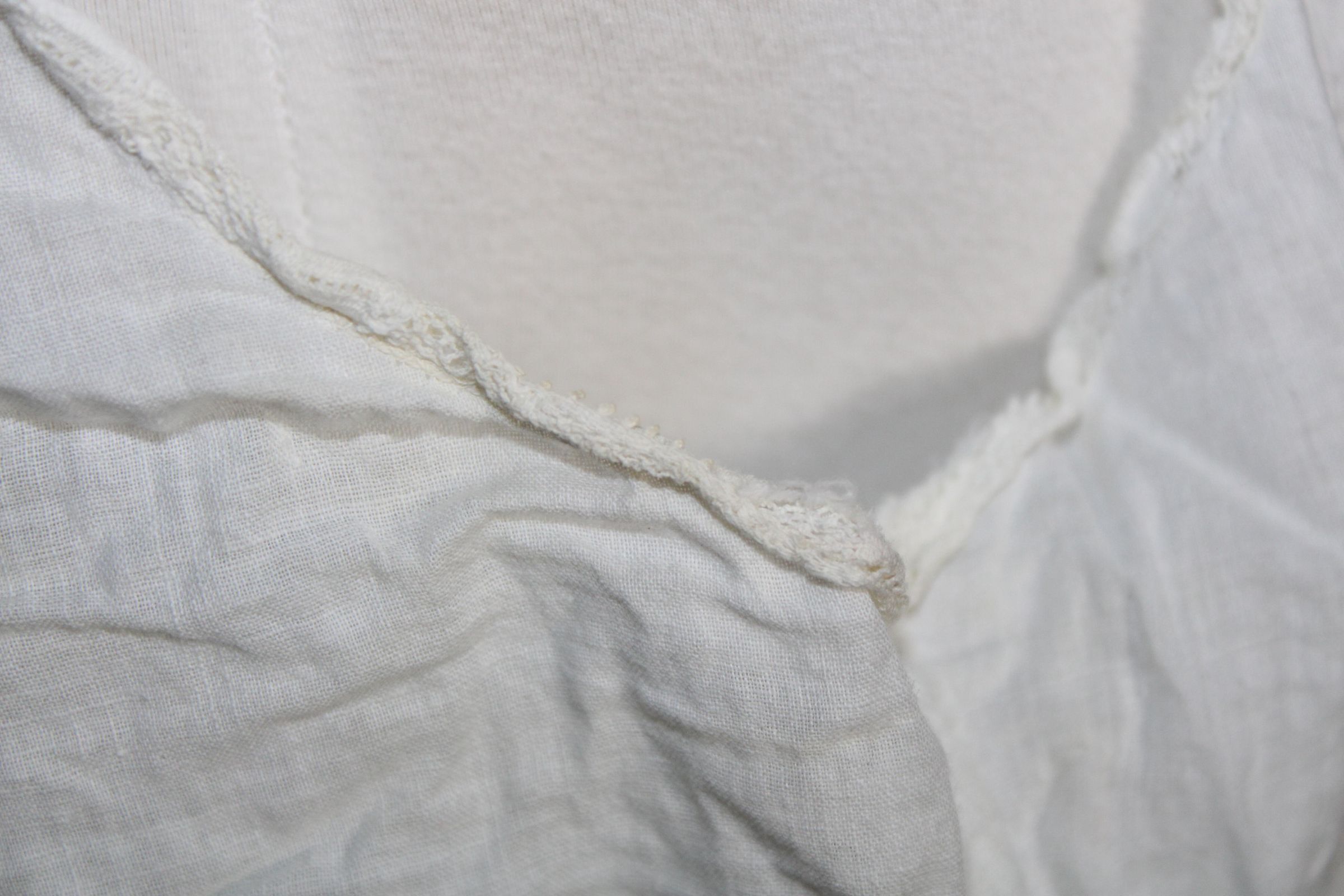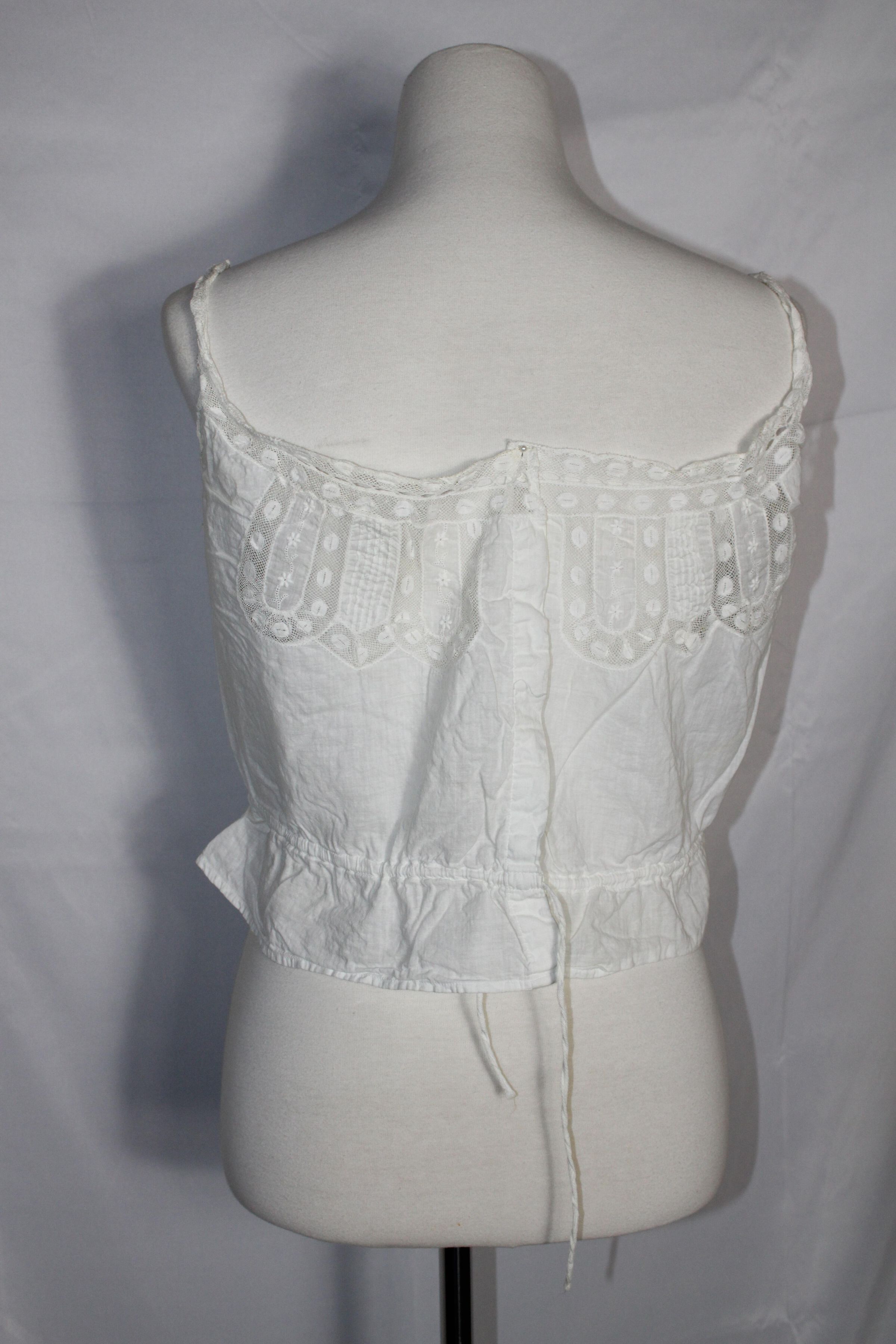 Early 20th century corset cover. Drawstring waist. Missing ribbon along neckline.Collection