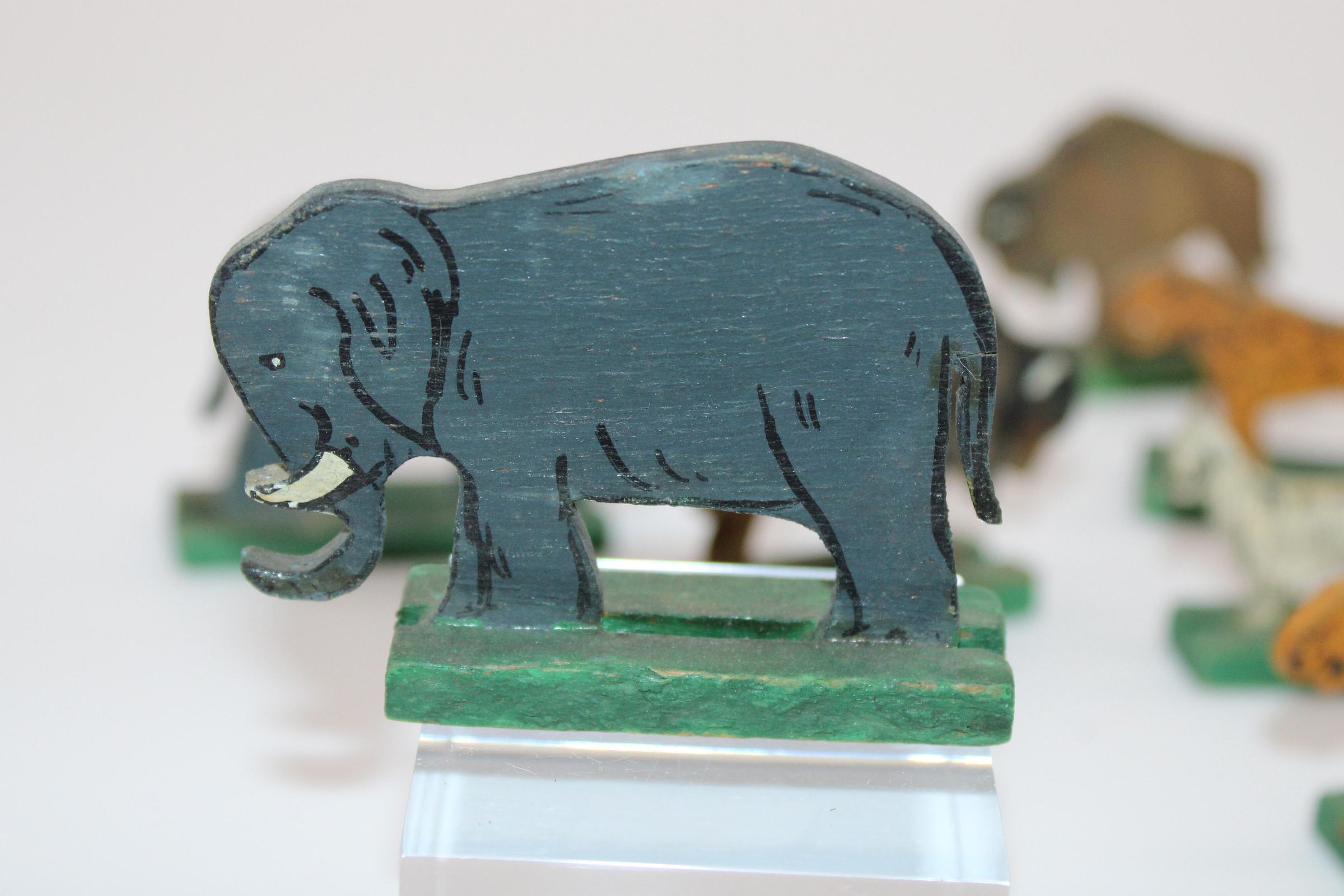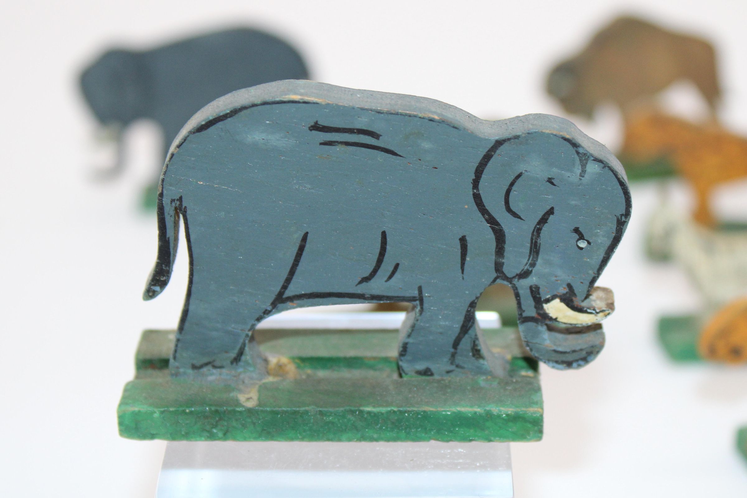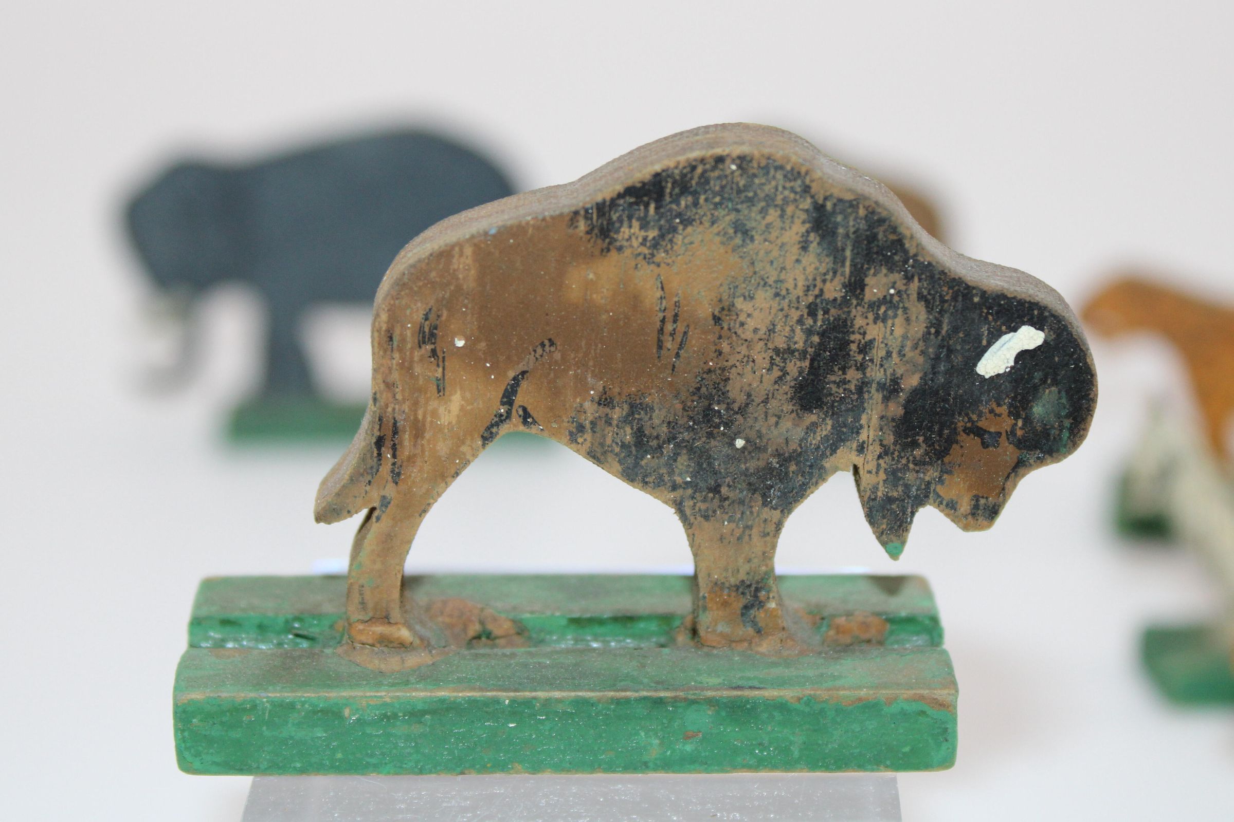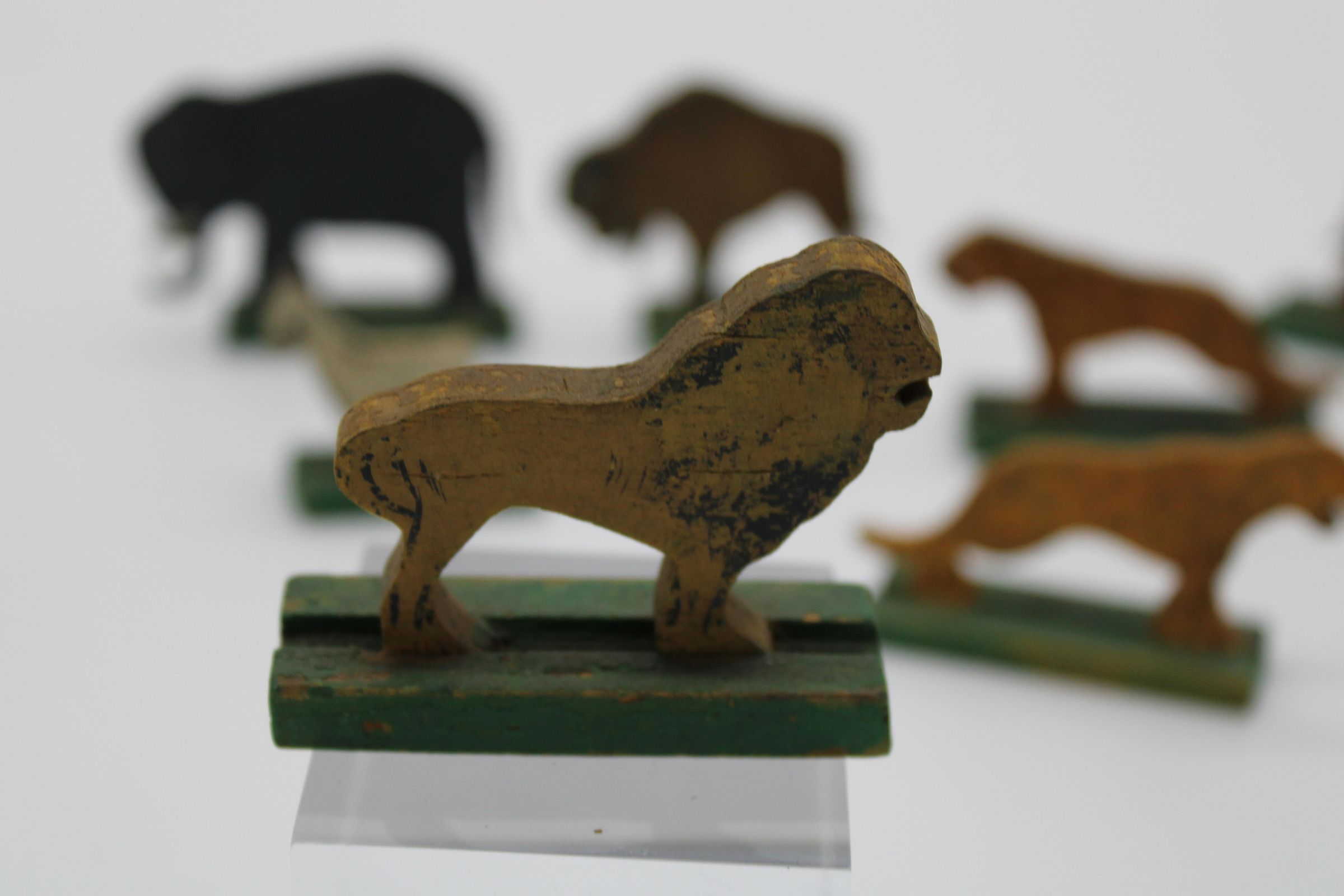 A toy boat and series of animal figurines meant to represent the Christian, Islamic, and Jewish story of Noah's Arc. Along with the boat are two elephants, two bison/buffalo, one lion, two cheetahs, two goats, and a bluebird. May have been used as a bath toy based on the damage to the boat. WoodenCreated By