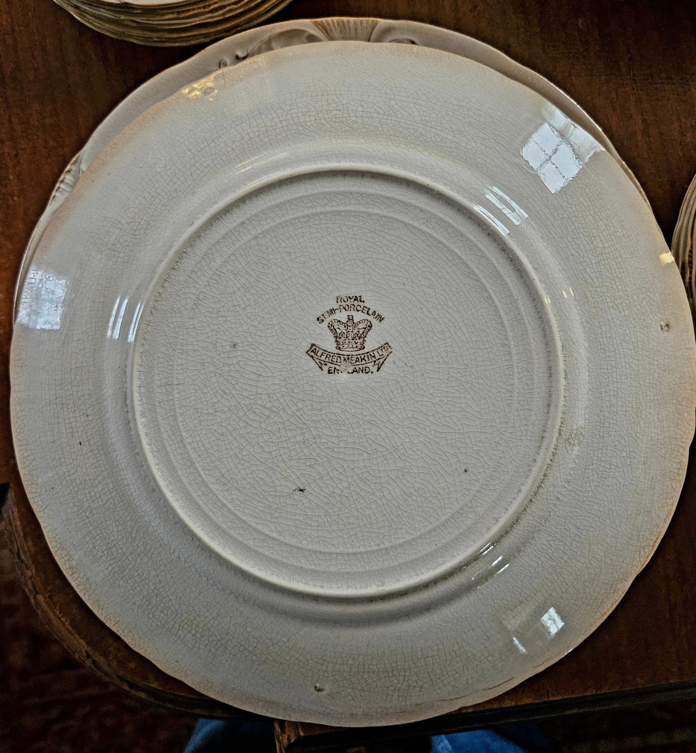 Alfred Meakin, the brother of James and George Meakin, founded Alfred Meakin, Ltd. in England in 1875. He utilized the Royal Albert Pottery, Victoria Pottery (built 1858), and Highlands Pottery located on Parsonage Street in Tunstall. When Alfred Meakin died in 1904, he was succeeded by his son, Alfred James Meakin. Alfred James died four years later. Meakin marketed its wares abroad, especially in the United States utilizing the mail order catalogs of several large companies. Robert Johnson, Alfred John’s uncle, acquired Alfred Meakin, Ltd. for his son James. The firm remained in the Johnson family until 1976. The firm made ironstone and semi-porcelain dinnerware, tea wares, and toilet wares.Use