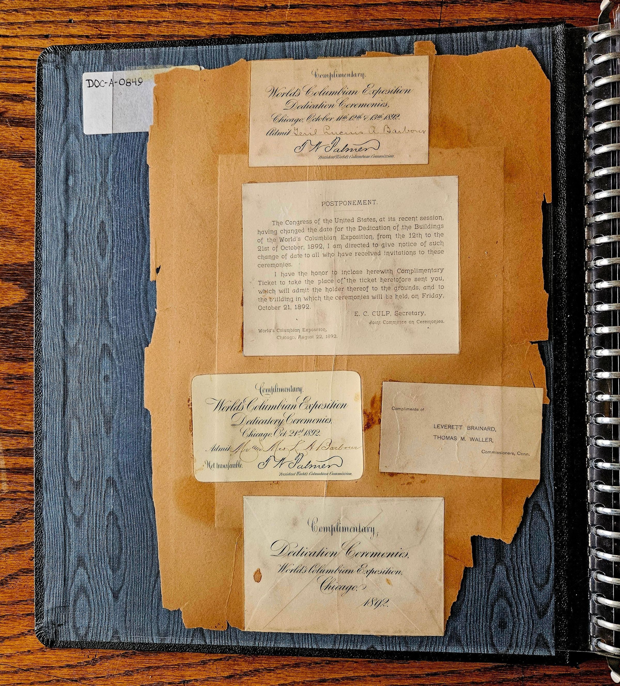 E. S. Boss Scrapbook, Columbia ExpositionEntry/Object ID