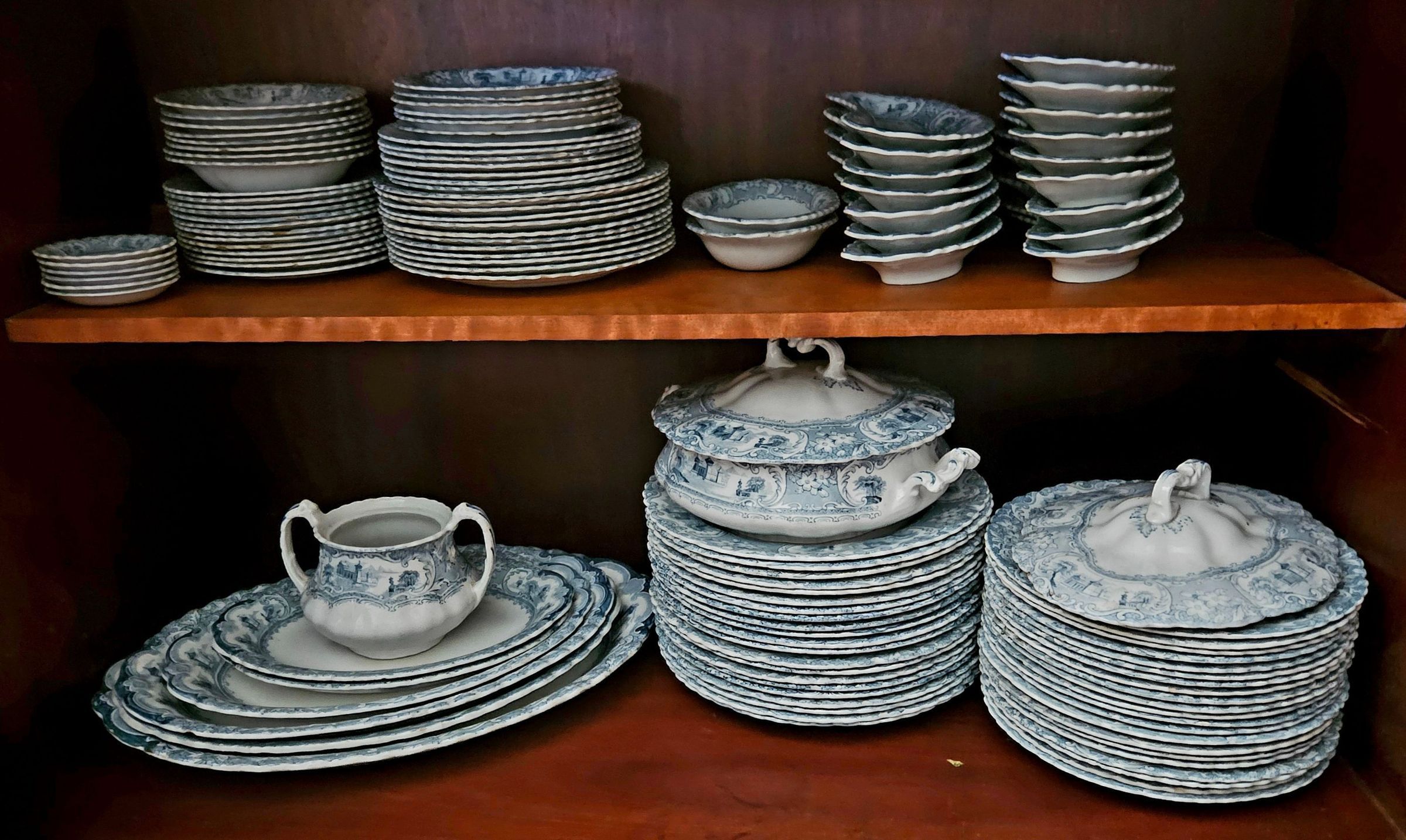 Set of china dinnerware manufactured by W. H. Grindley and Co., Ltd, England. The pattern is called "Madrid." Donated to the Mill Museum in 1993 by Timothy and Donna Hartigan.