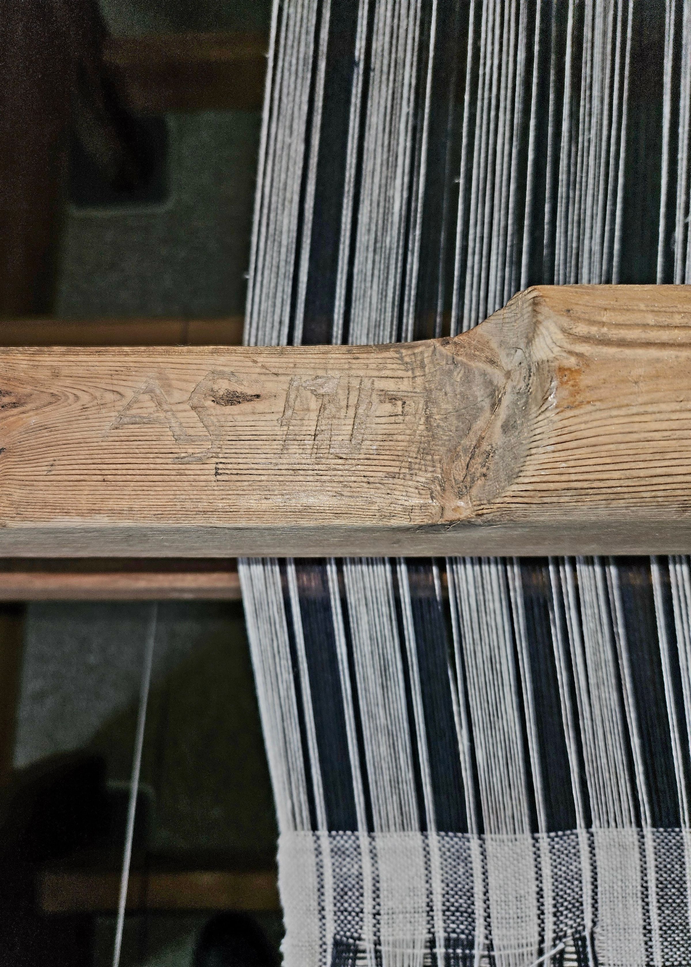 The following handwritten document was found in the Museum's files, ostensibly written by the donor: "The loom was made in southern Dalarna in Sweden 1717 by a local carpenter with the initials AS. The first owners ar[e] unknown. About 1840 it was owned by a family Dehlgren in a town named Sala in Vasfermanland. It was a welthy [sic] family with interests in corn, lumber and charcoal. The wife was daughter to a french blacksmith who was invited to the mine town Sala. Among the children they had a dauter [sic] named Anna Fredrika (1845-1894). She met, fell in love and run away with a traveling teatcher [sic] named Jakob Petrus Rentstrom (1846-1927)[.] They married 1864 and imediatly [sic] got skolded [sic] by her father. They setled [sic] down 1872 in Billingsfors, Dalsland, When the father died 1873 Anna was accepted in the family again and got this loom among other things. Anna and Jakob got 10 children, number eight was Fredrik Feofil (1880-1967), also a teacher. He married Edit Lovgren (1882-1955). They setled [sic] down in Frollhaltan, Vastergotland and married 1902. One of Fredriks [sic] sisters Sofia lived with the family for a couple of years and she brought the loom with her. When she left she put it in the attic, where I found it 1974, when the children of Edit and Fredrik devided [sic] the home. Number four of the six children is my mother Astrid." The above was written in blue ballpoint pen on lined notebook paper.Collection