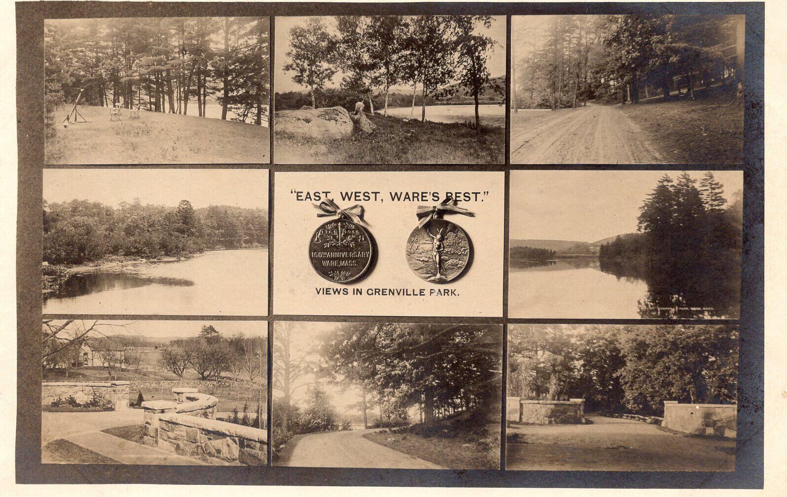 A black and white postcard of "East, West, Ware's Rest." with the views in Grenville ParkCondition