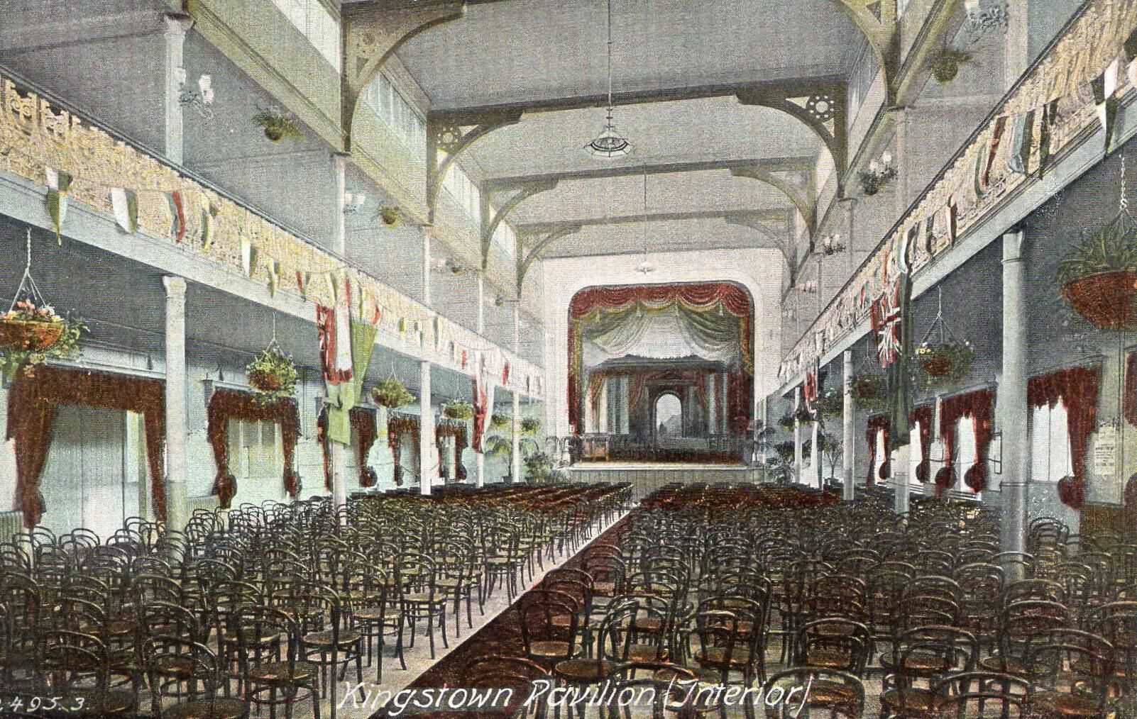 A postcard of the interior of Kingstown Pavilion.Condition