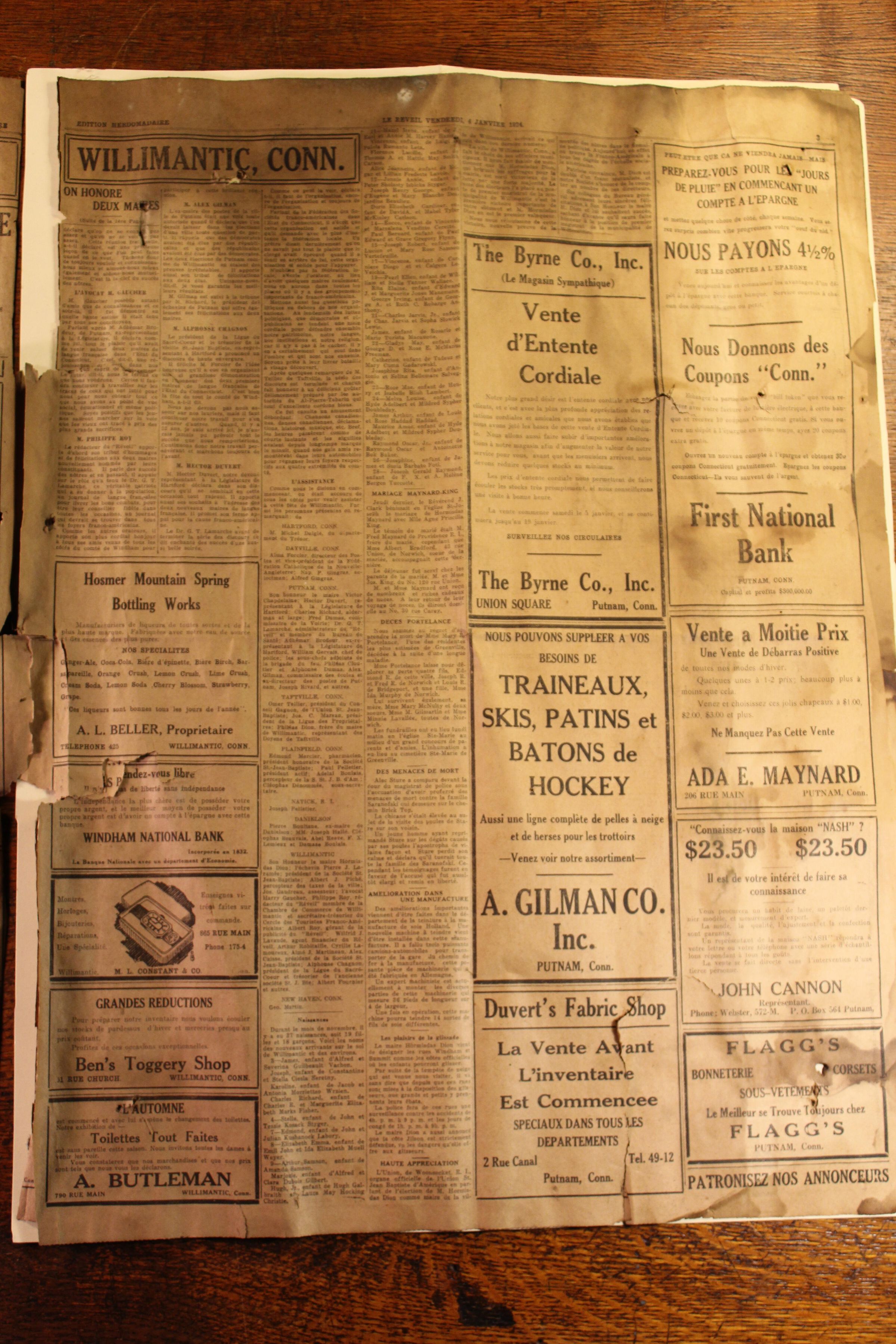 Early 20th Century French Canadian Newspaper for the Fall River, MA, Putnam and Willimantic CT areas.Collection