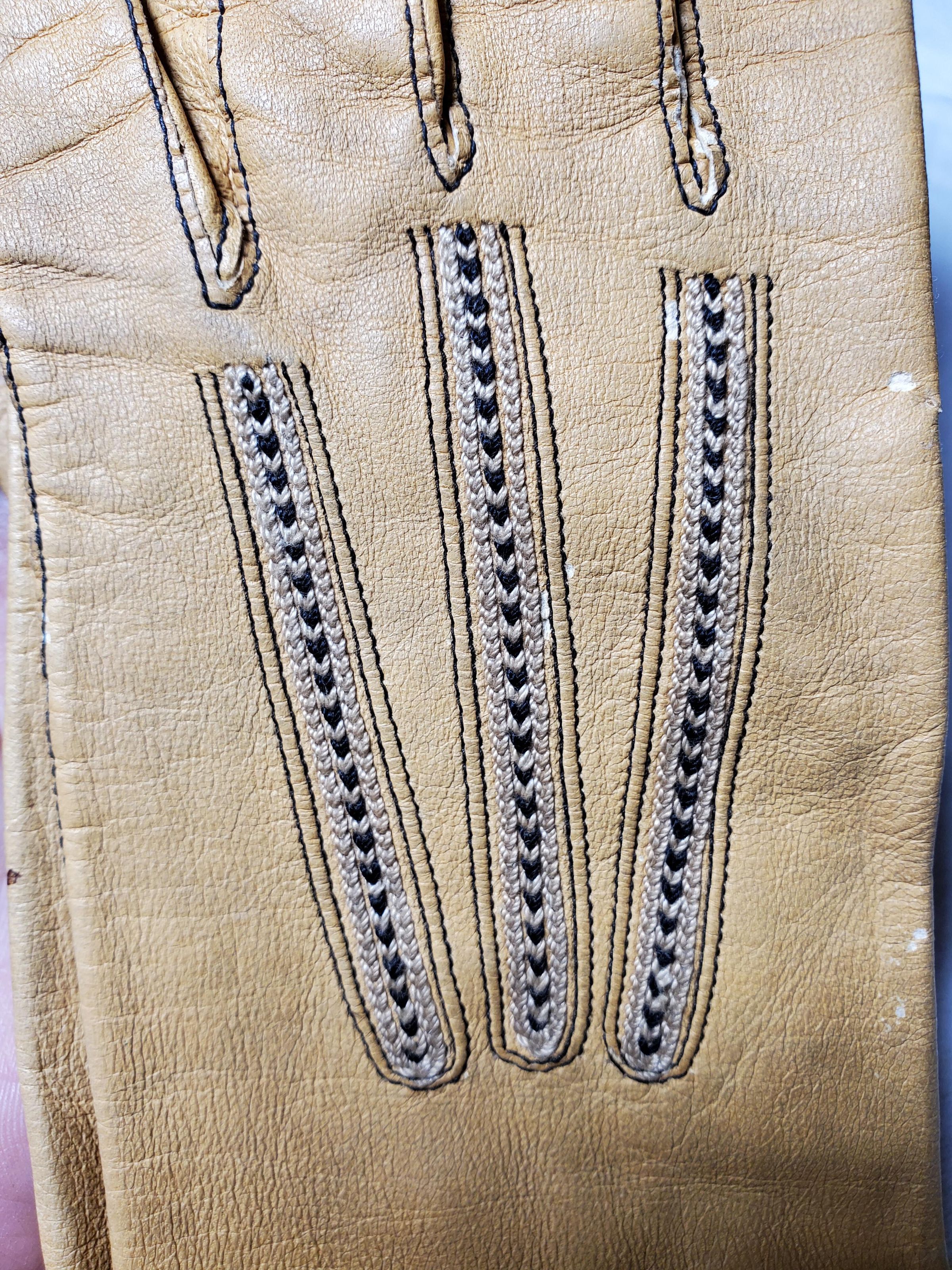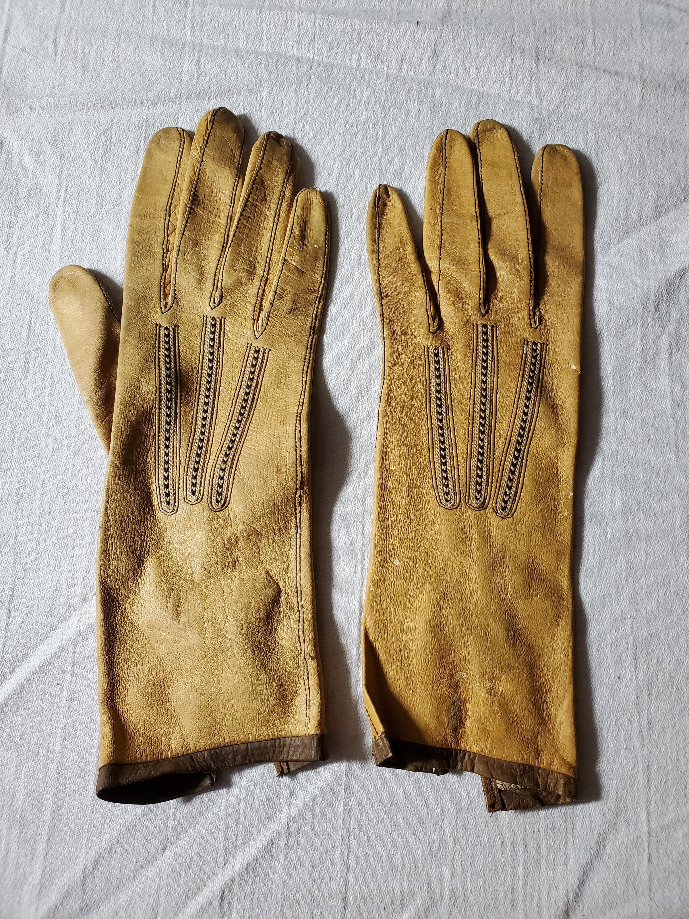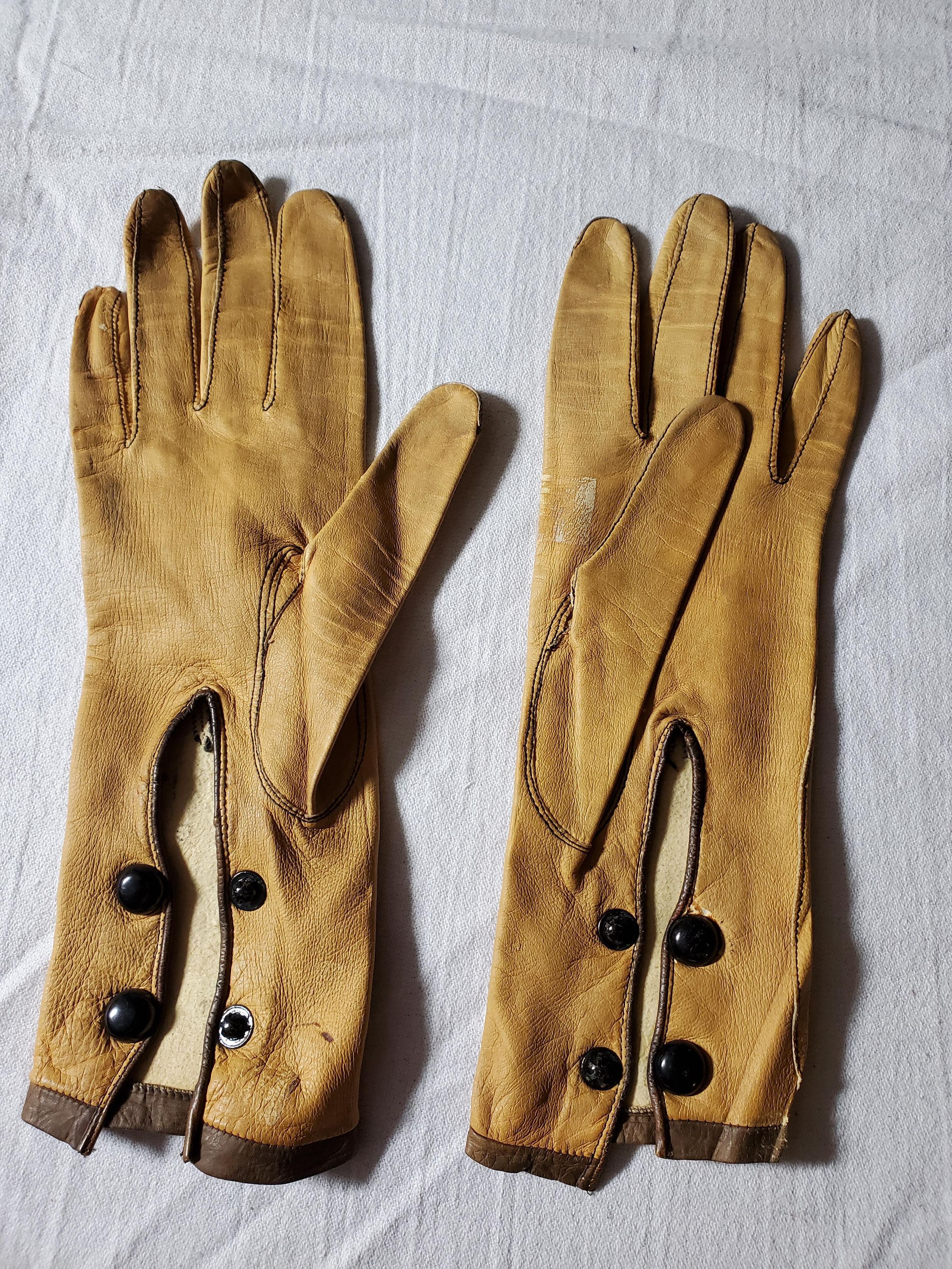 Early 20th century leather gloves. Gloves are machine sewn with metal snapsClothing/Dress/Costume Details