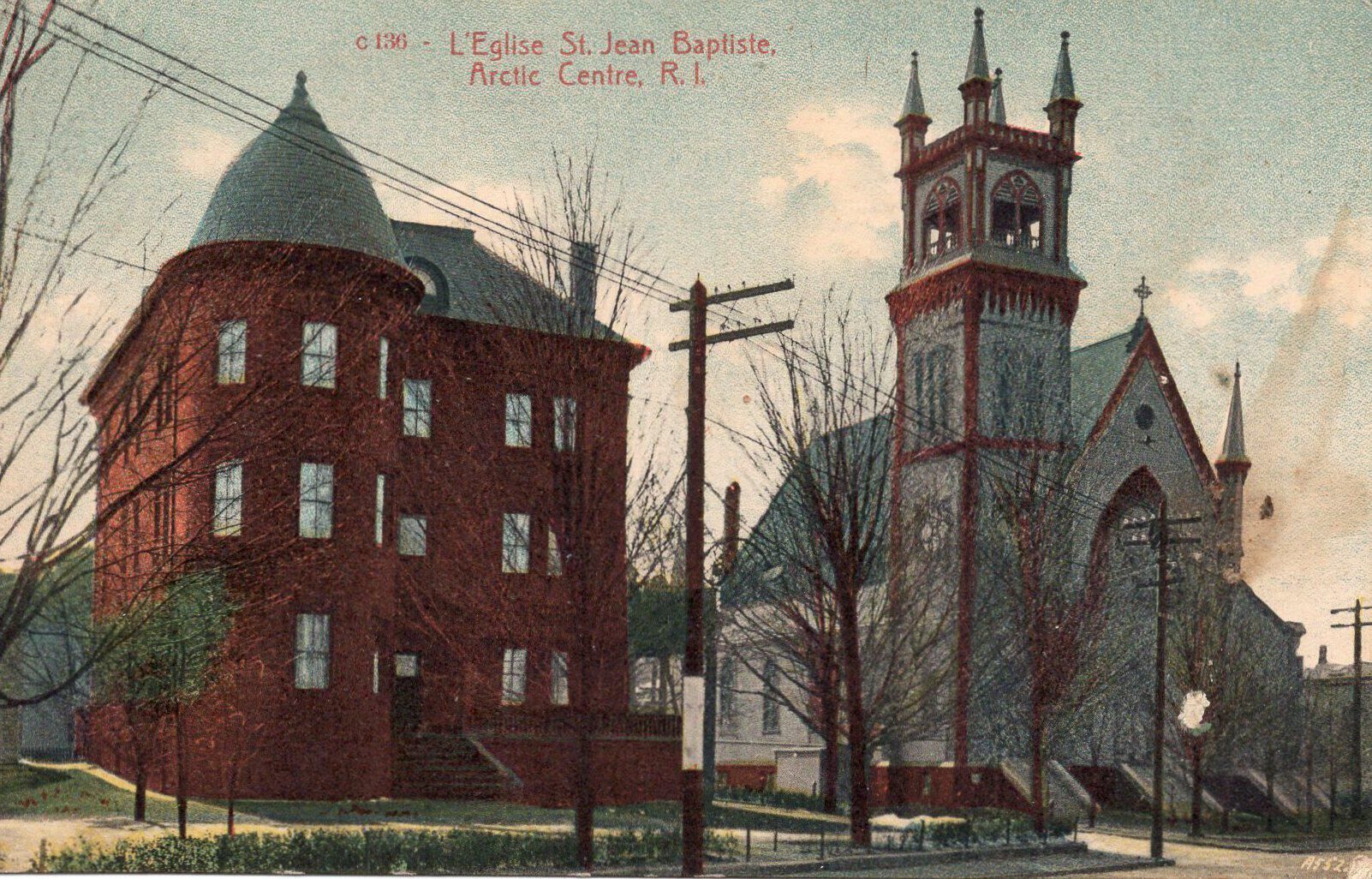 A postcard of L'Eglise St. Jean Baptiste in Arctic Centre, R.I.Postcard Details