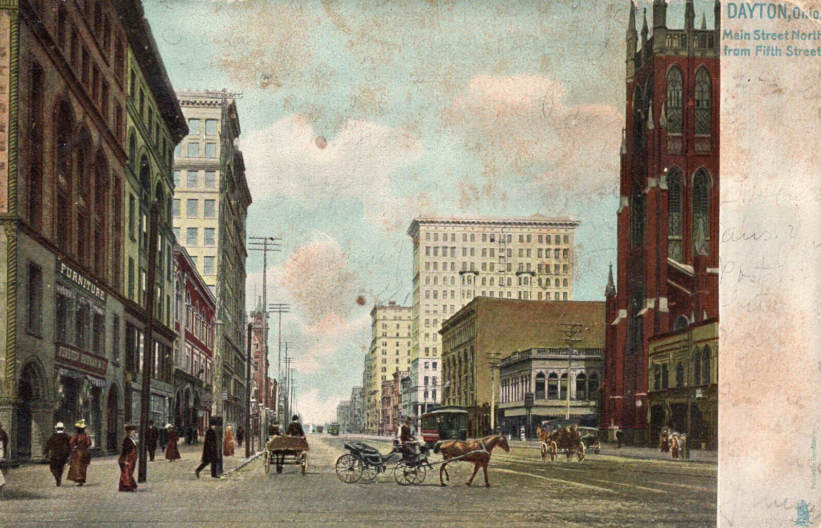 A postcard of Main Street North from Fifth Street in Dayton, OhioCondition