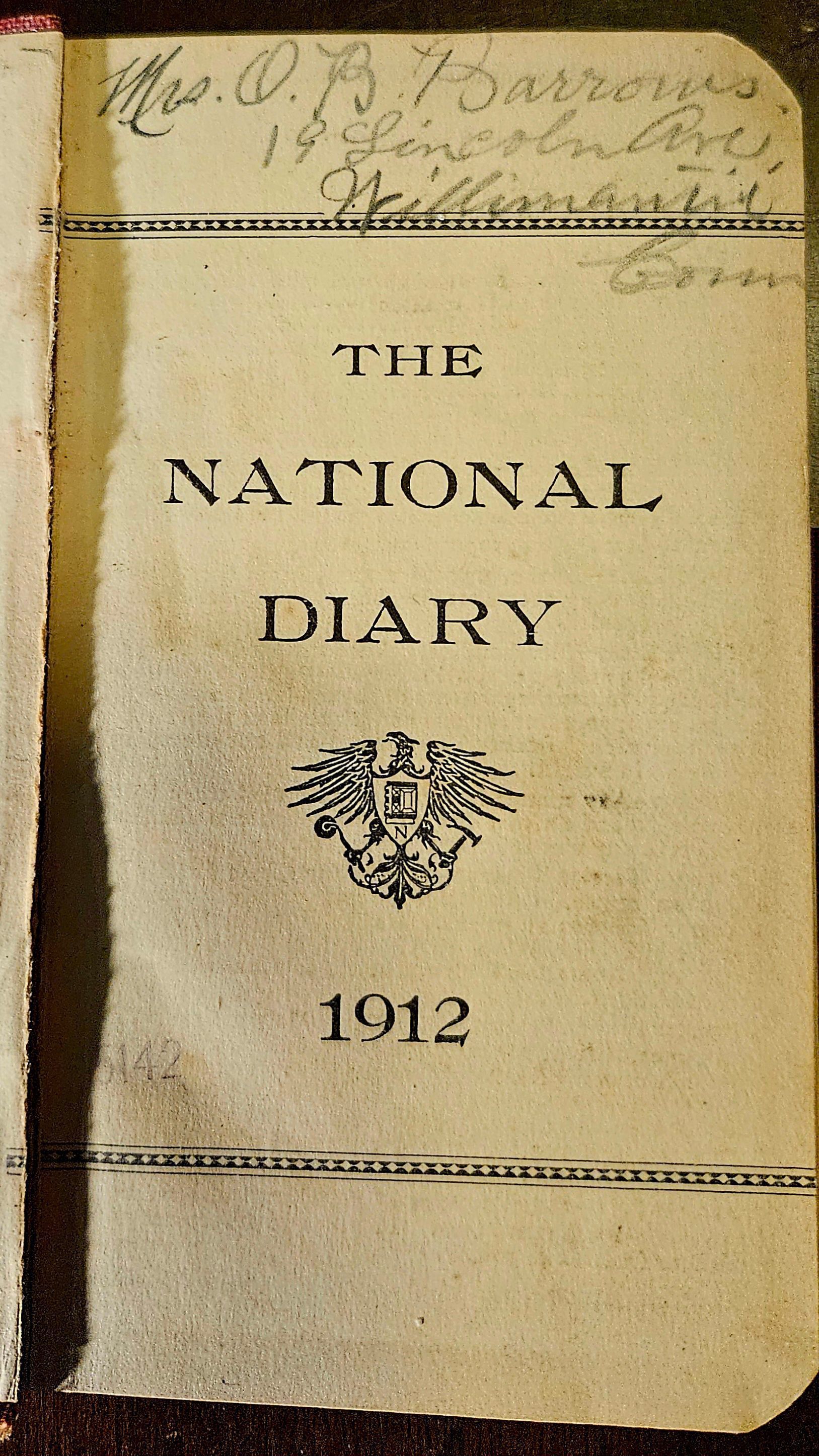 Handwritten diary of Martha N. (Perkins) Barrows of Willimantic, CT. 1912. Printed, two-entries-per-page daily diary for 1912. Includes monthly "cash account" pages in the back. Martha N. Perkins was born in 1860 in Mansfield, CT. The 1880 U.S. Census shows her, age 19, living with her parents in Mansfield. She married Oscar Bernadotte Barrows, also of Mansfield, in c. 1885. Both the Perkins and Barrows families had levied in Mansfield for several generations. The 1910 U. S. Census shows Oscar and Martha Barrows living in Willimantic at 19 Lincoln Avenue in a rented home. Oscar was a watchman, employed by The Willimantic Machine Company. The Willimantic Machine Company was located at 95 Milk Street. It had been incorporated on April 20, 1899, and in 1912 had capital of $50,000, which made it one of Willimantic ten largest businesses. The President was George E. Stiles and the Secretary/Treasurer was E. H. Holmes. In 1910, the Barrows household also included Martha and Oscar's son, Clarence O. Barrows, 24, a letter carrier for the U.S. Post Office, and Lila Simonds, 26, an inspector at the "thread mill," which probably meant The American Thread Company. Martha did not work outside of the home. Oscar died only four years after Martha wrote her diary, in 1916, aged 59. Martha died in 1938, and is buried in the Old Willimantic Cemetery.Use