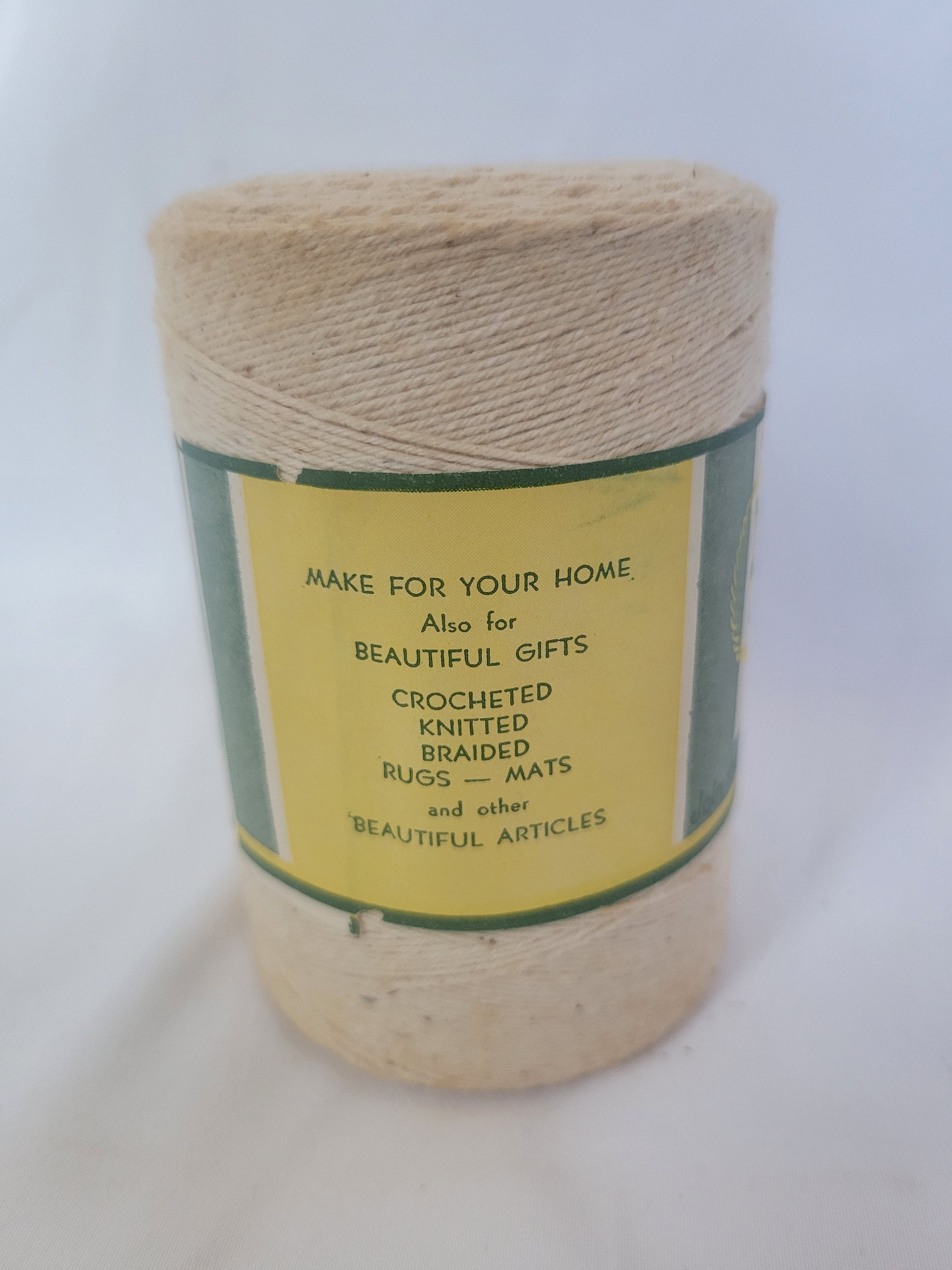 The January and Wood company operated out of Maysville, KY and was active from 1851 to 2003. They were a cotton mill whose production focused on home weaving needs for cloth and rugs, as well as all-purpose string. The label also includes a call for weavers to join the Maysville Weavers Guild, also known as the Maysville Guild of Home Weavers. Members of the guild received a periodical called The Shuttle with tips and techniques for home weaving.Collection