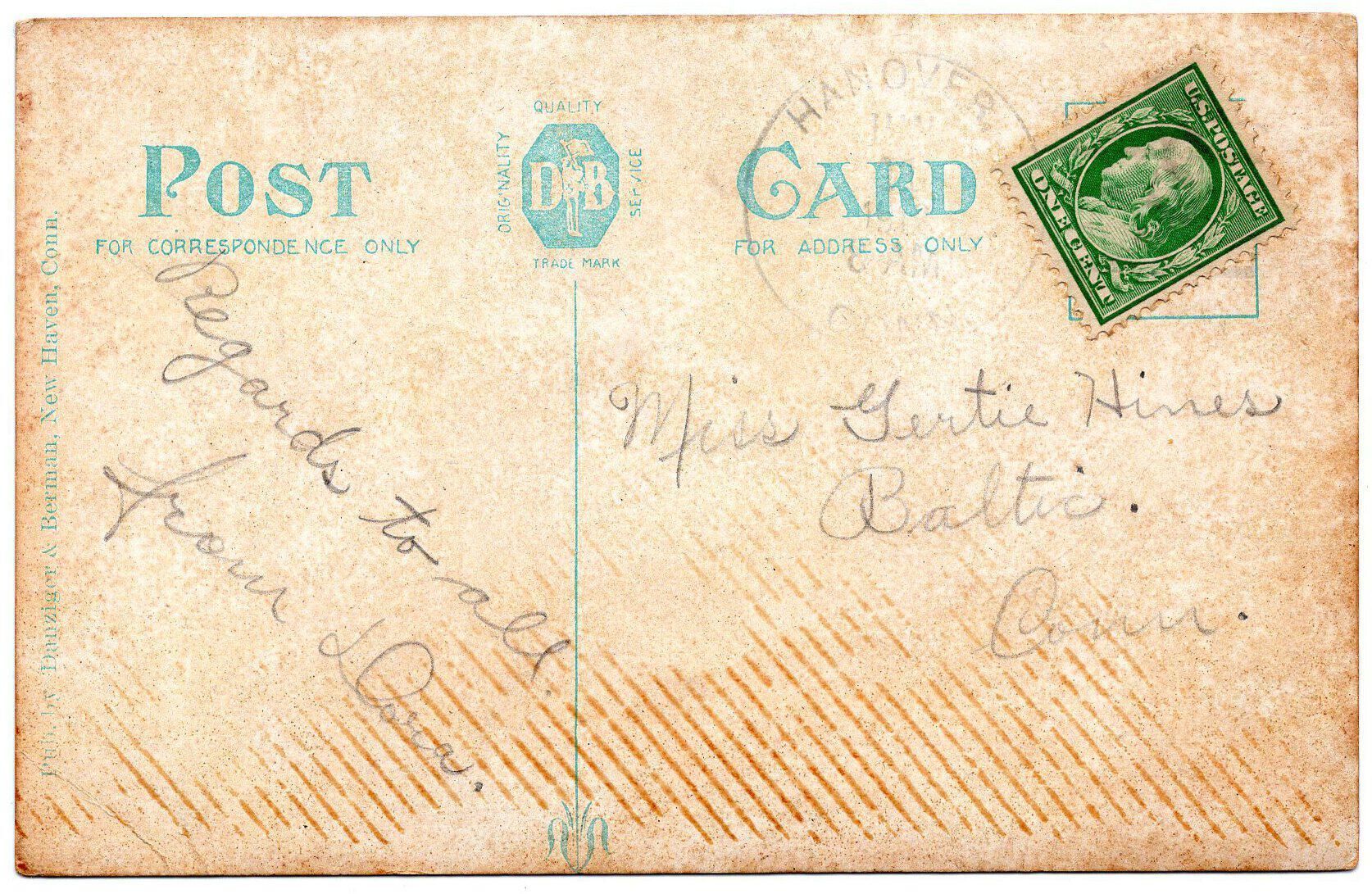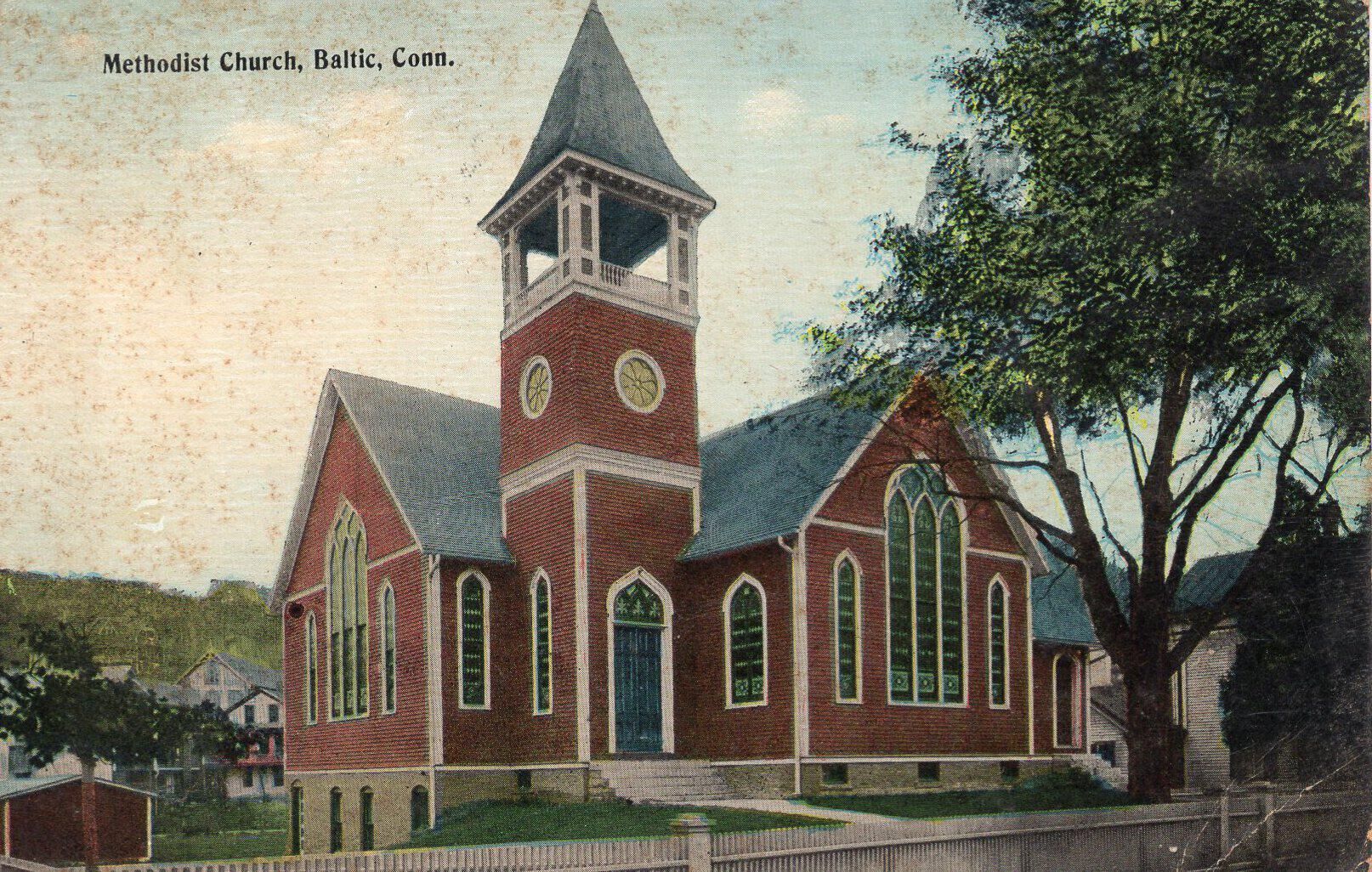 A postcard of the Methodist Church in Baltic, CT sent in 1912.