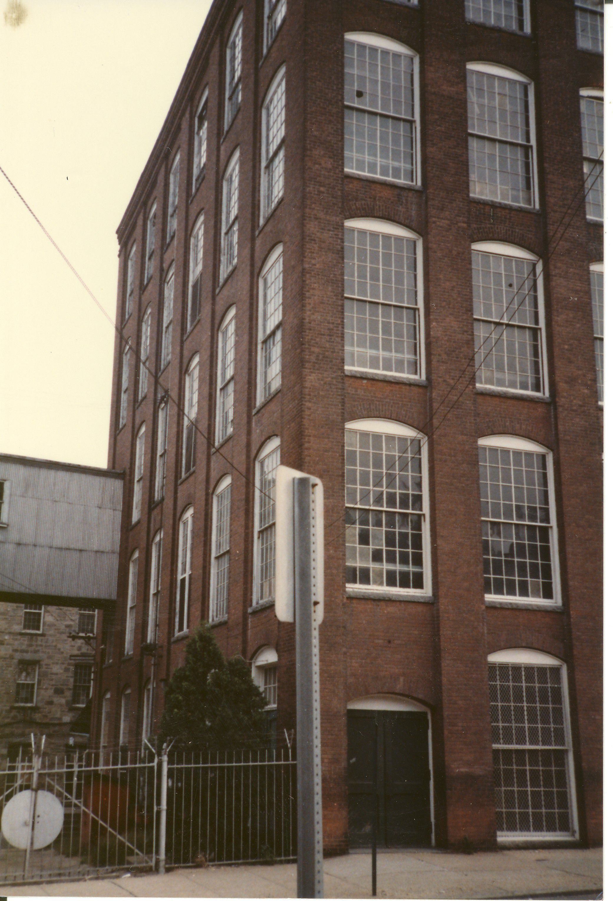 Color photographic print of the east end of Mill No. 6, American Thread Company, Willimantic, CT. Unknown photographer. Taken c. 1987, shortly after ATCO closed its Willimantic plant.Photograph Details