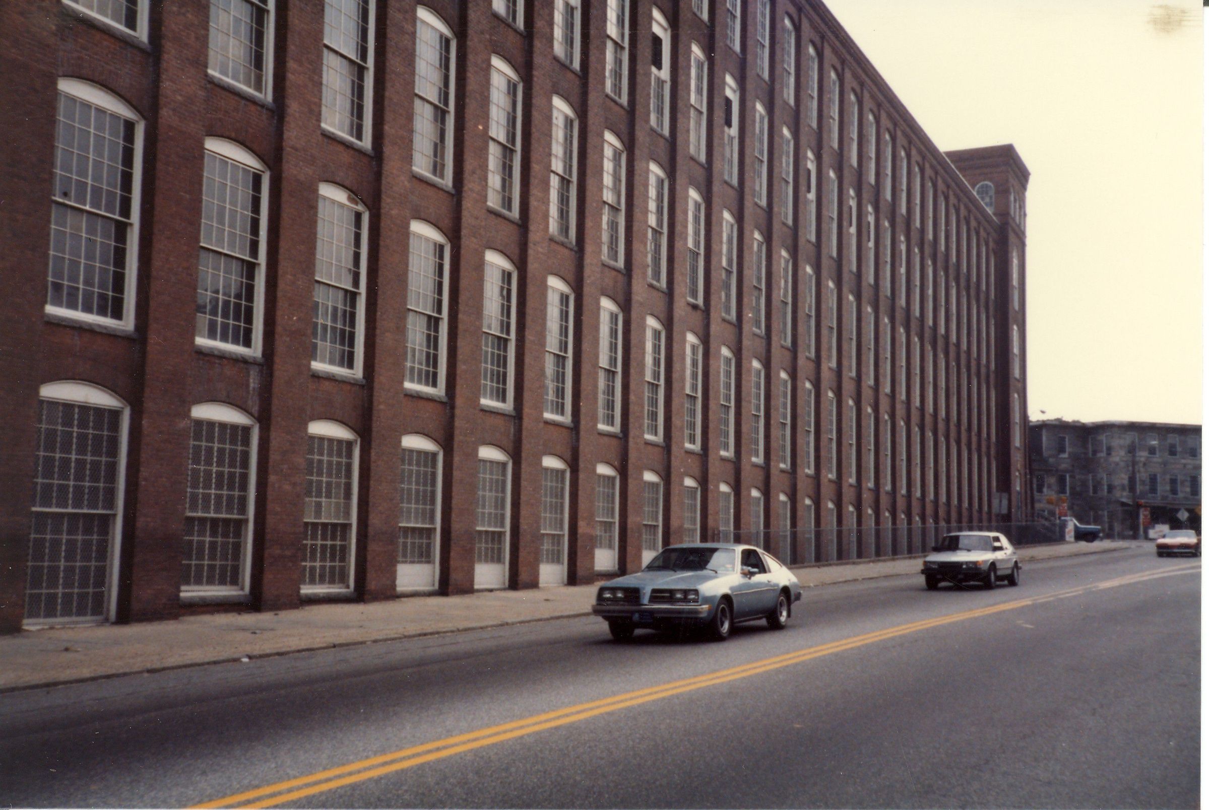 Color photographic print of Mill No. 6, American Thread Company, Willimantic, CT. Taken from Main Street. Unknown photographer. Taken c. 1987, shortly after ATCO closed its Willimantic plant.Photograph Details