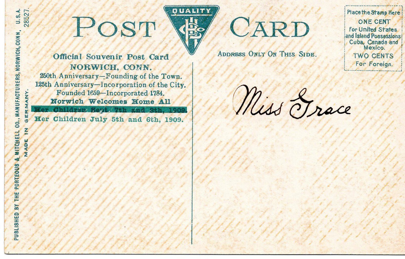 1909 Anniversary Postcard