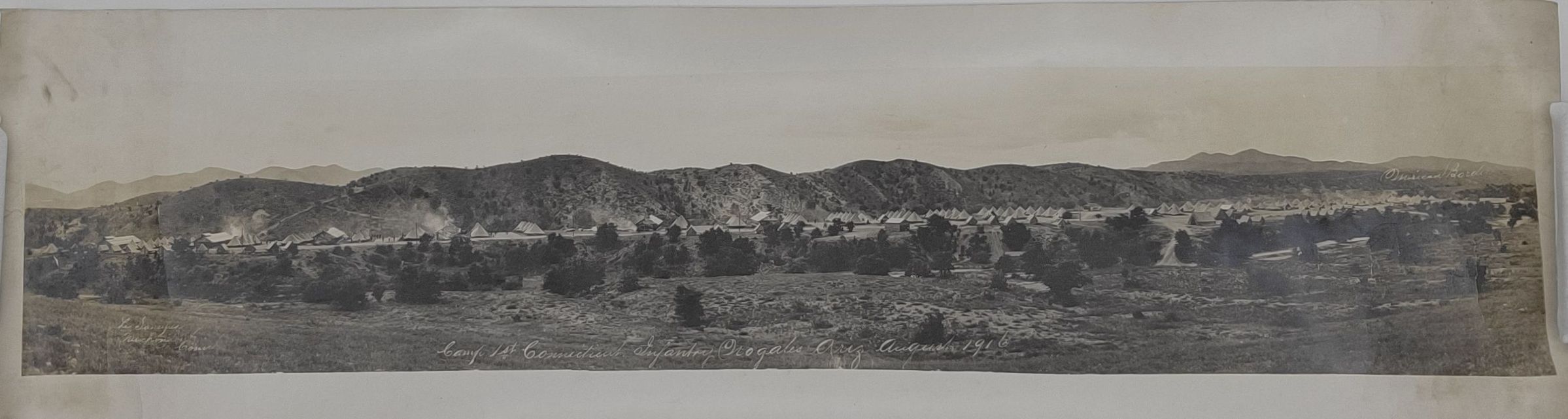 Handwritten on the print in white is "Camp 1st Connecticut Infantry Nogales Ariz August 1916"