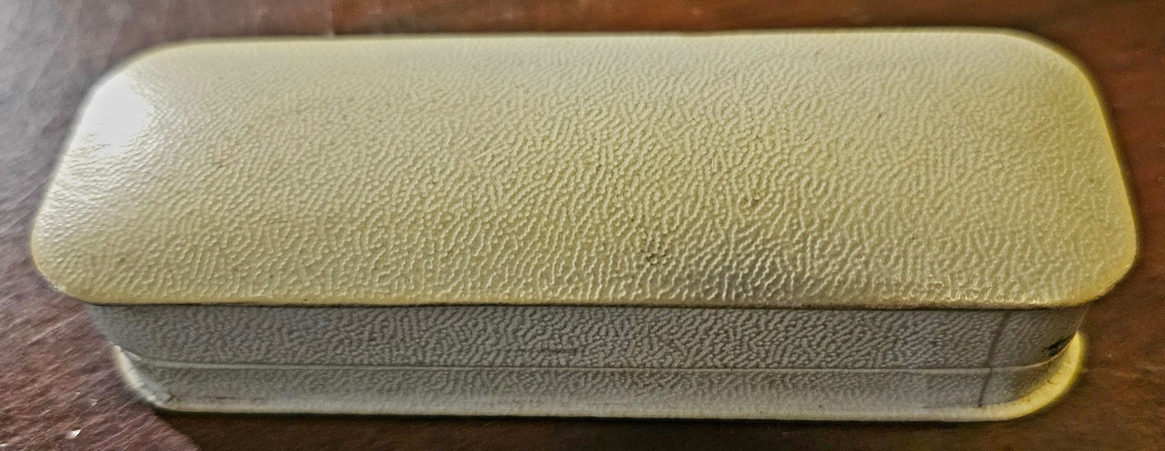 Gold and seed pearl tie pin in its original boxes. One box labeled "J. C. Tracy, Willimantic Connecticut, Jeweler."Context