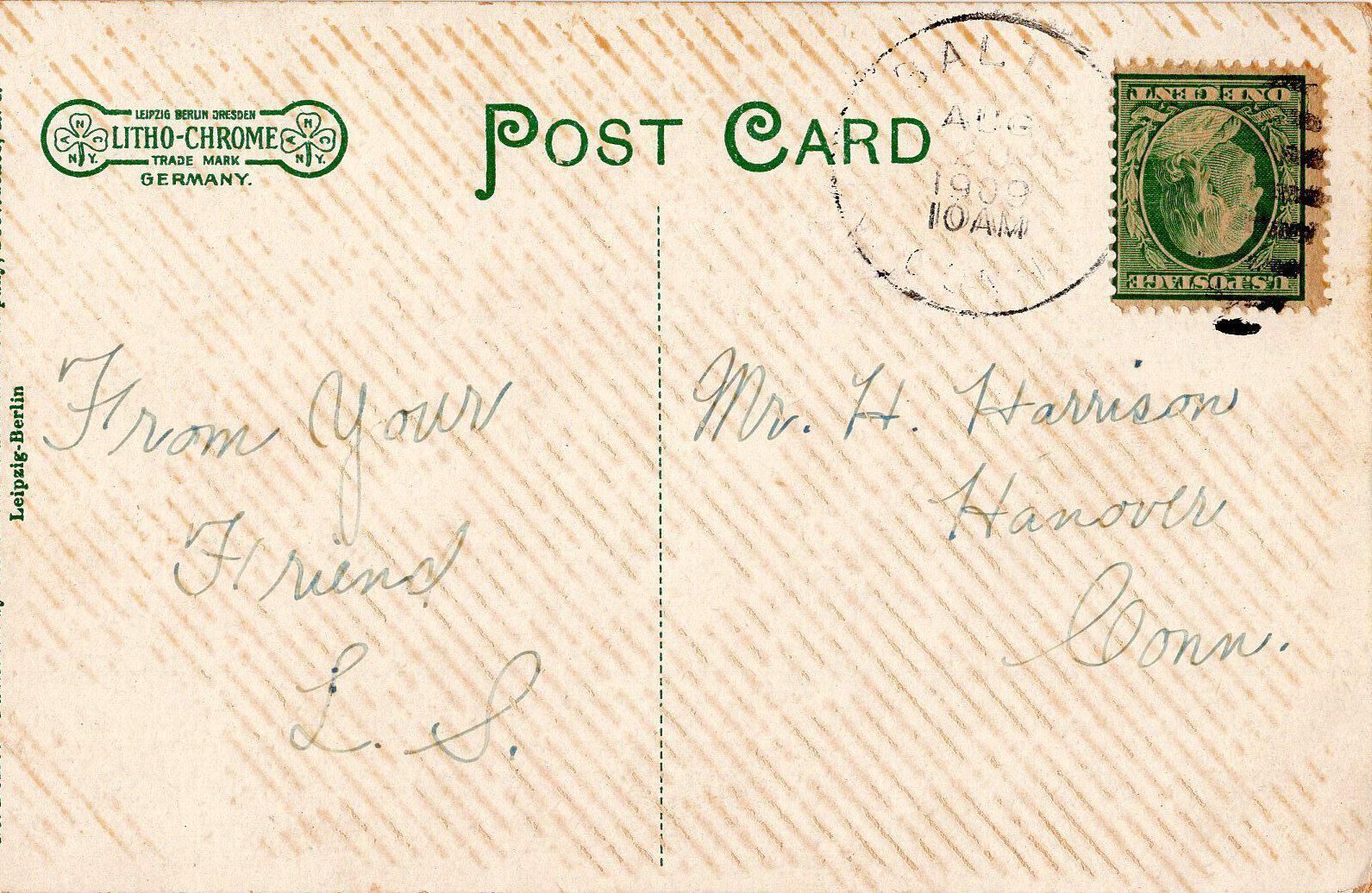 A postcard from Rodrick Block on High Street in Baltic, Conn, 1909.Collection