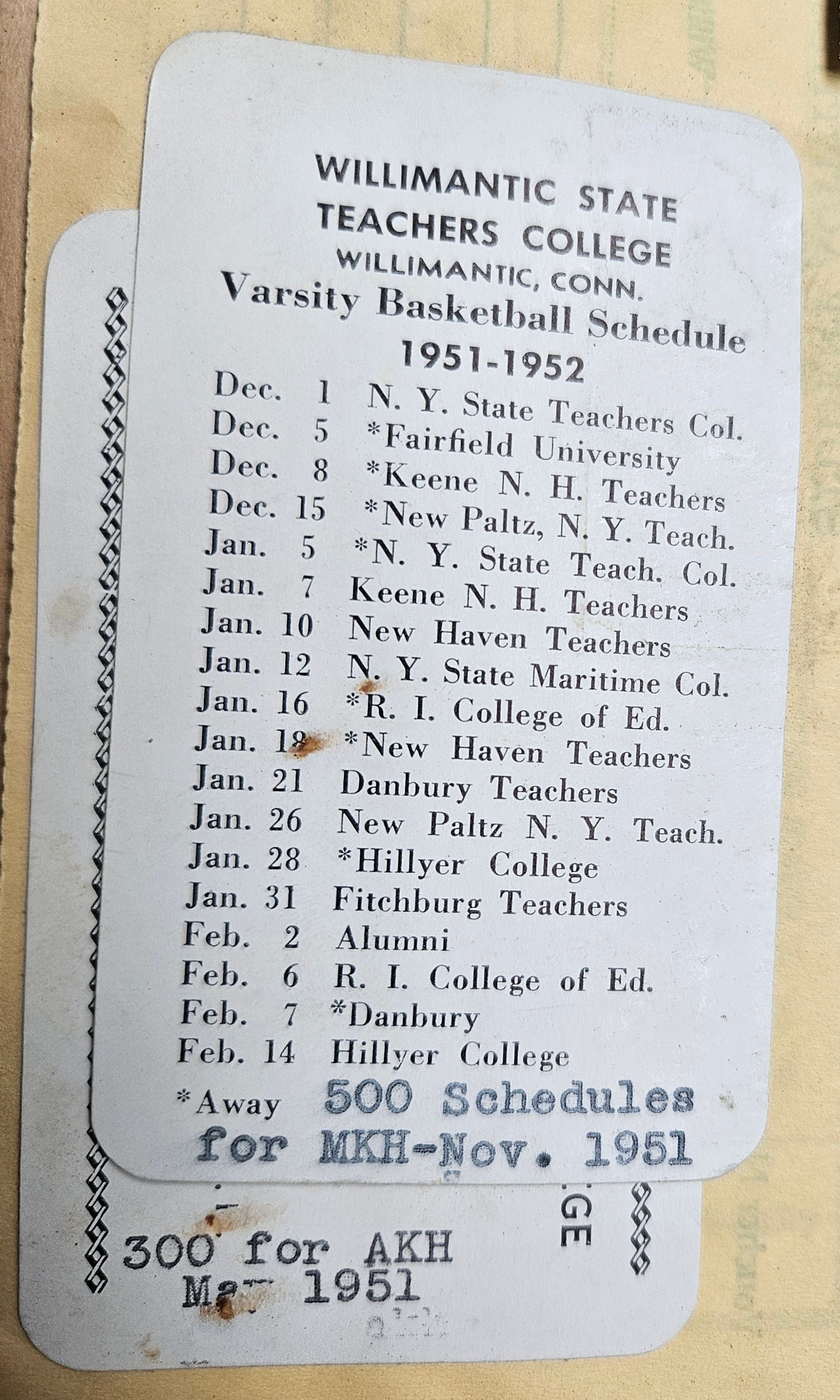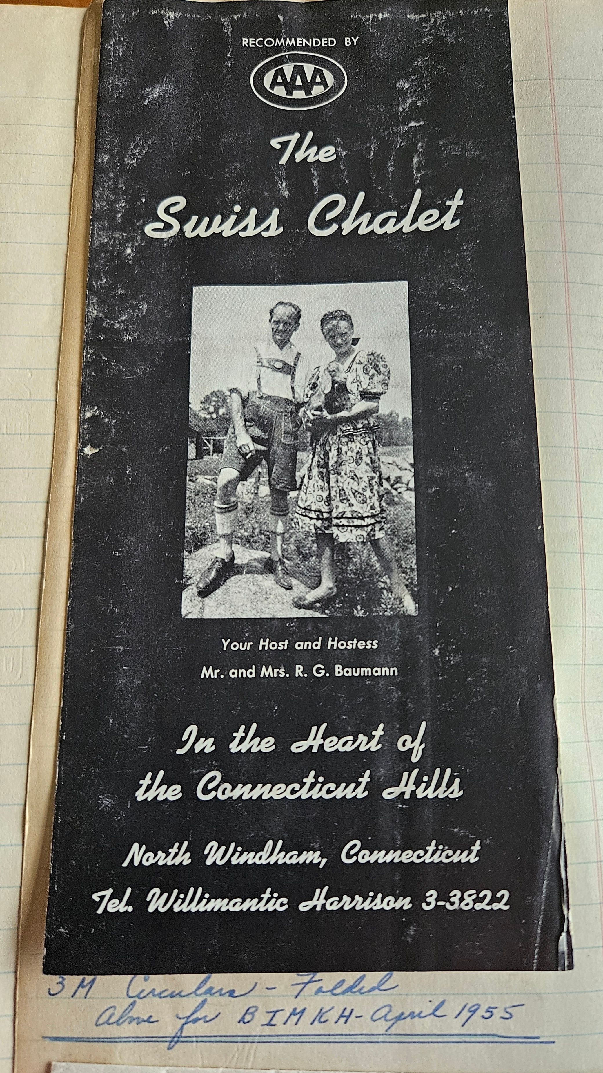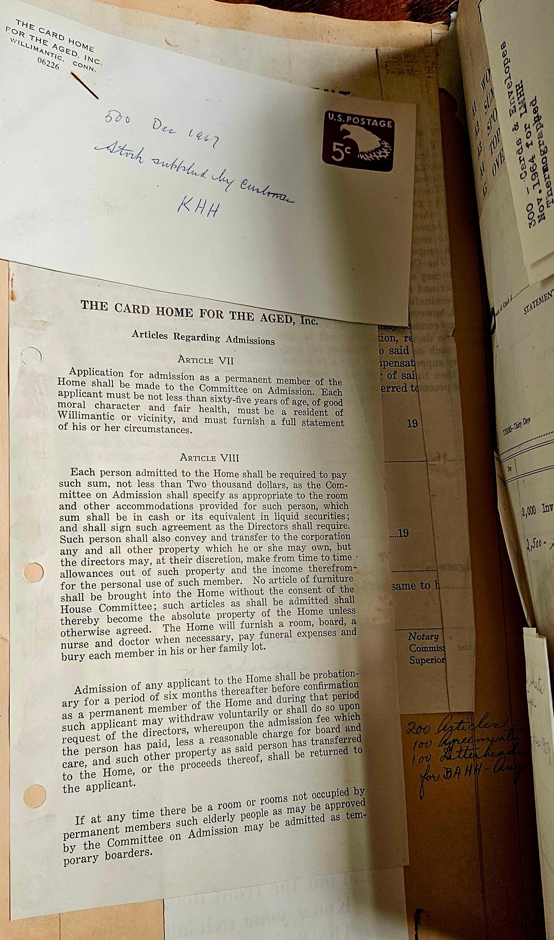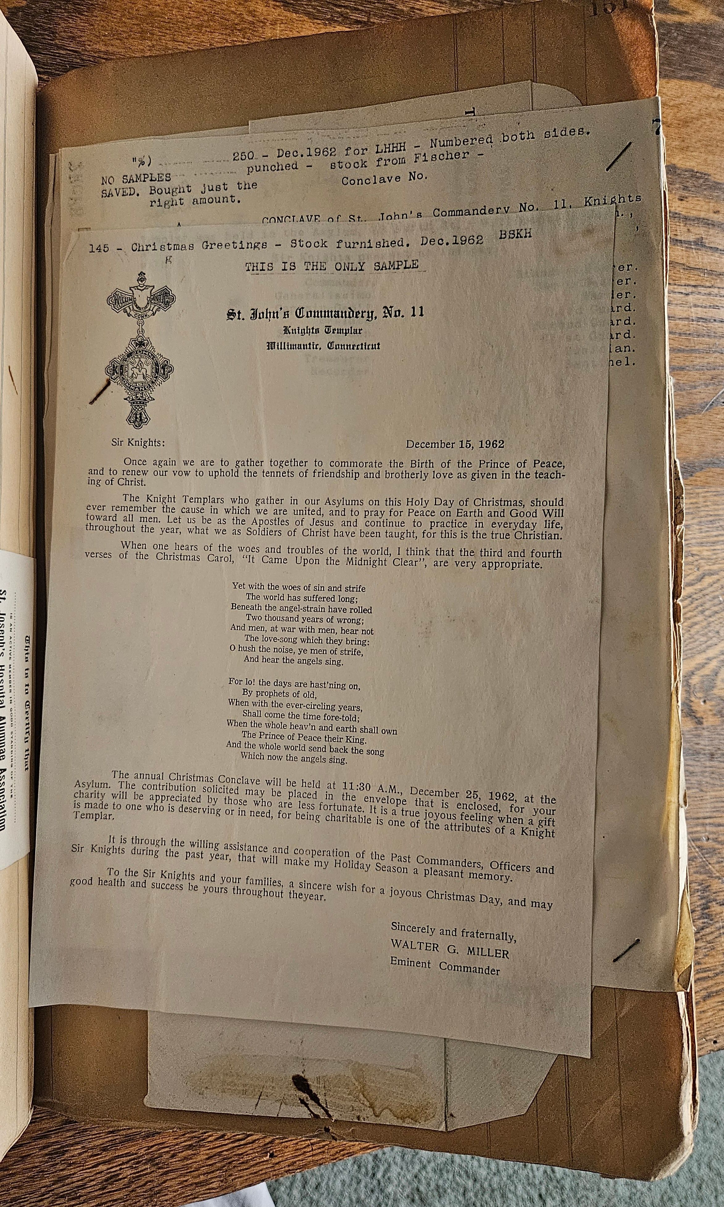 A cloth-bound ledger or record book with blank, ruled pages, containing pasted-in printer's proofs for customers in the greater Willimantic, CT area. Also contains a hand-written index. The cloth cover is faded green with black design work. Customers include a wide variety of local businesses, churches, clubs, political groups, etc. Entries are date from c. 1940 to c. 1965. The name of the printer is not noted, but is hypothesized to be the Hall and Bill Company, Willimantic largest printer during that period. The company opened in the late 1800s and closed in the early 1990s.Use