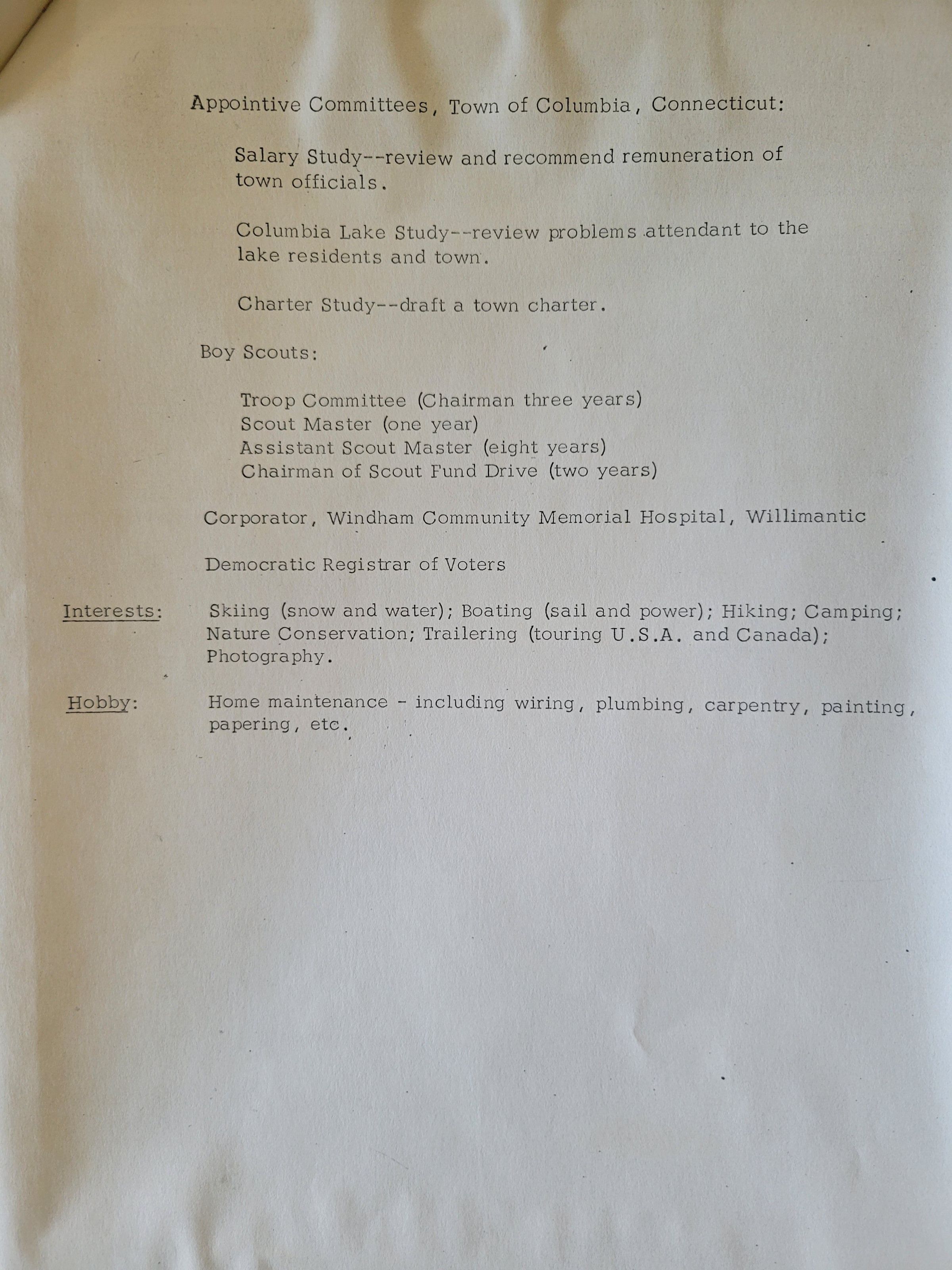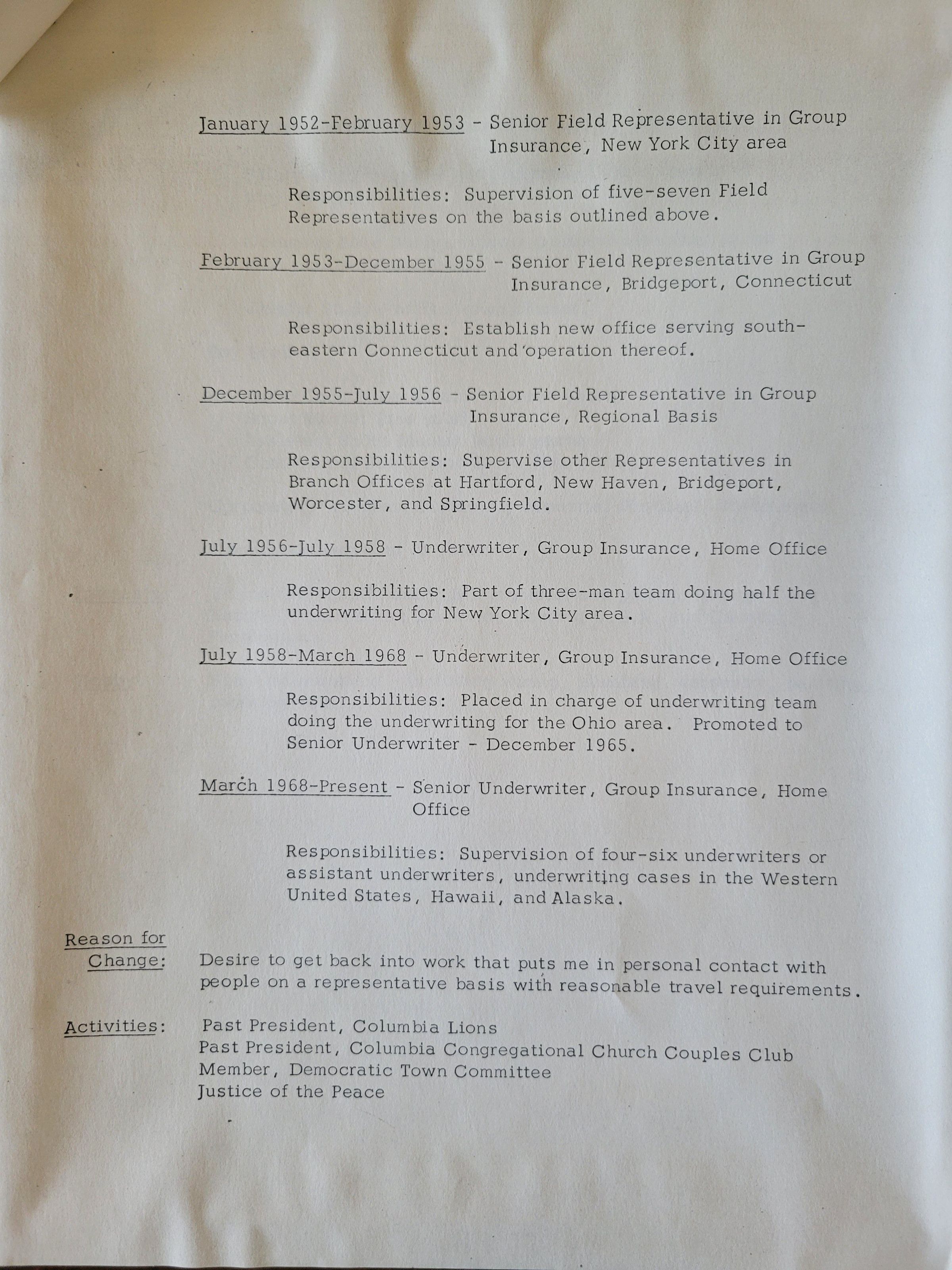 Resume of Henry M. Beck 1969Entry/Object ID