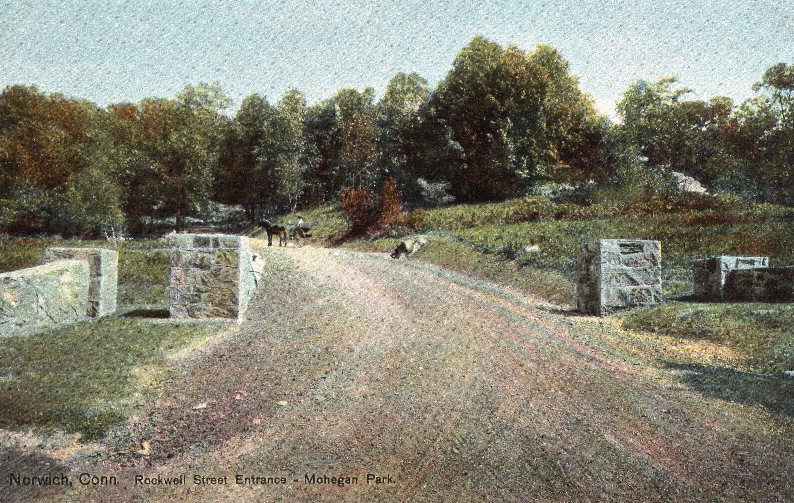 A postcard of the Rockwell Street entrance at Mohegan Park in Norwich, Conn.Postcard Details